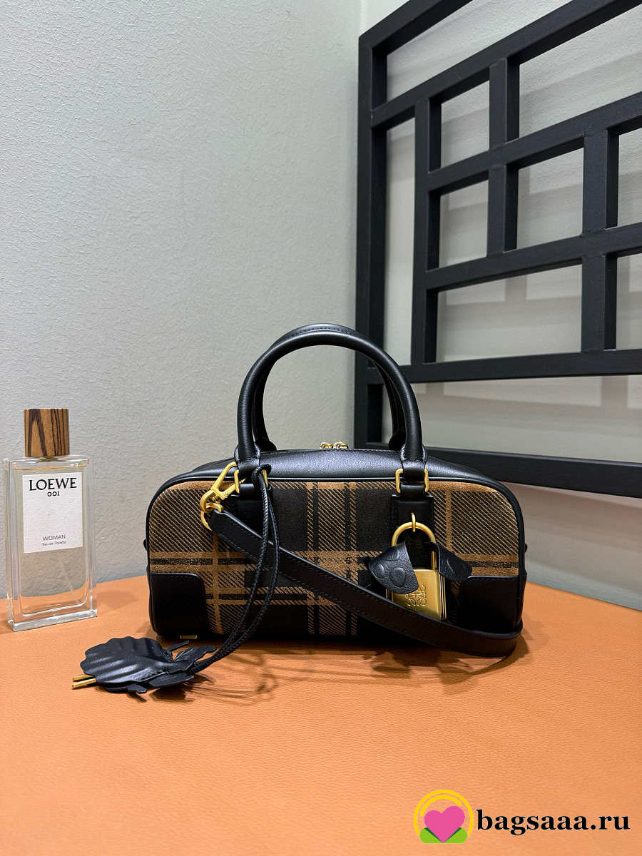 Bagsaaa Amazona 23 Cropped Bag in Tartan Suede and Napa Calfskin tan - 23cm