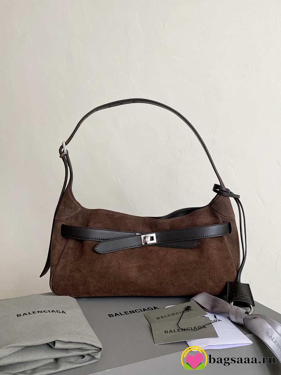 Bagsaaa Balenciaga Bel Air small shoulder bag dark brown suede - 30cm