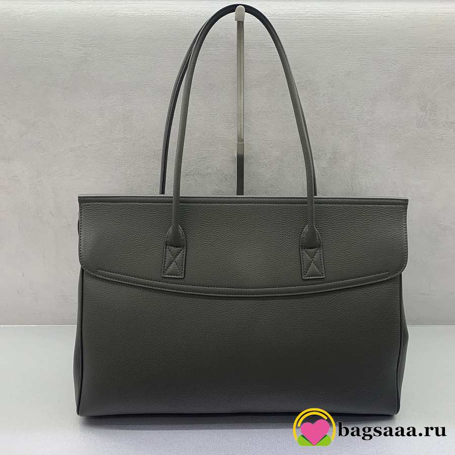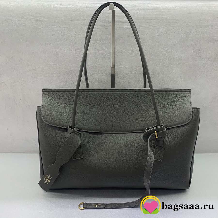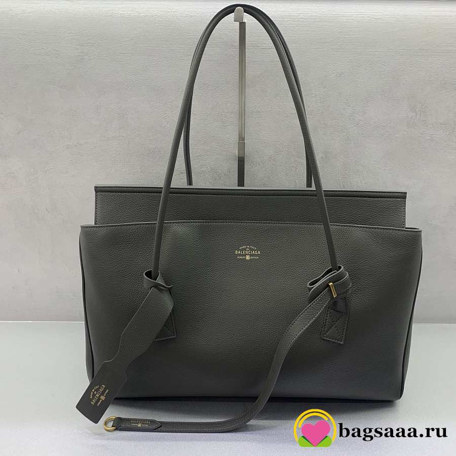 Bagsaaa Balenciaga Carrie medium grained-leather tote bag in a grey/khaki color - 44cm