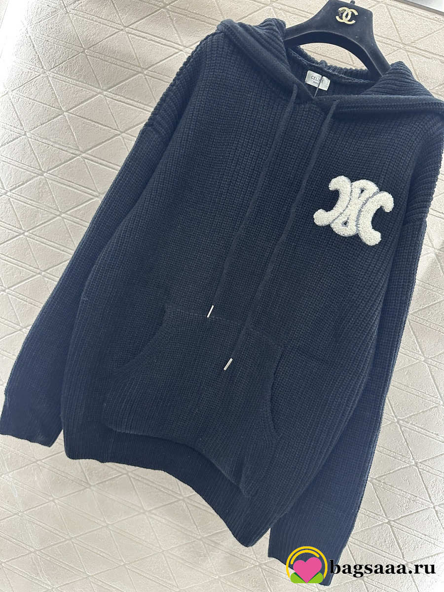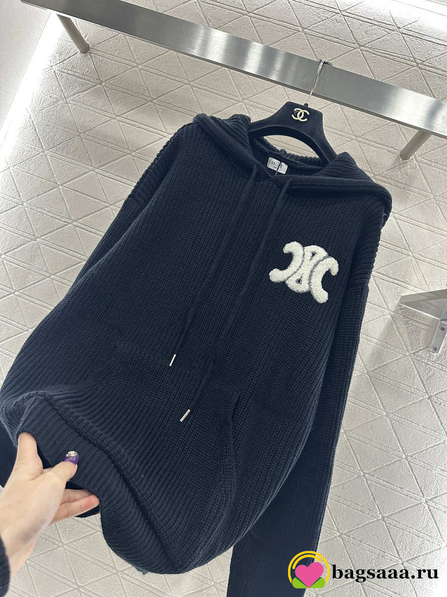 Bagsaaa Celine Homme Logo-Appliquéd Ribbed Wool Hoodie in navy blue