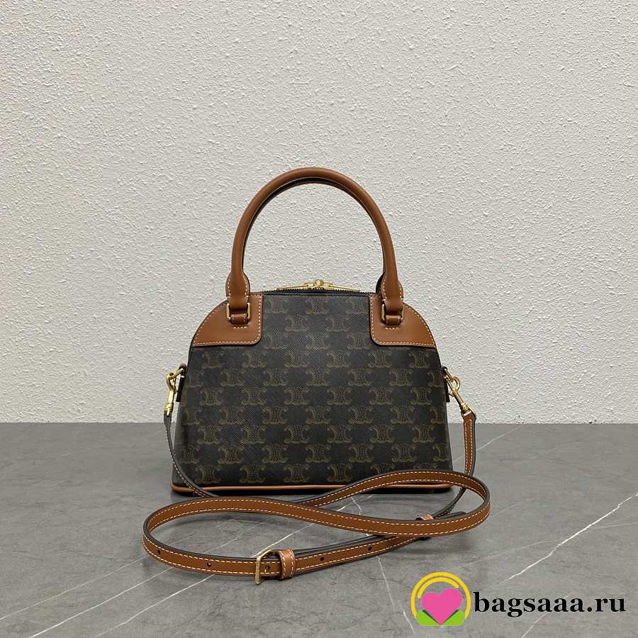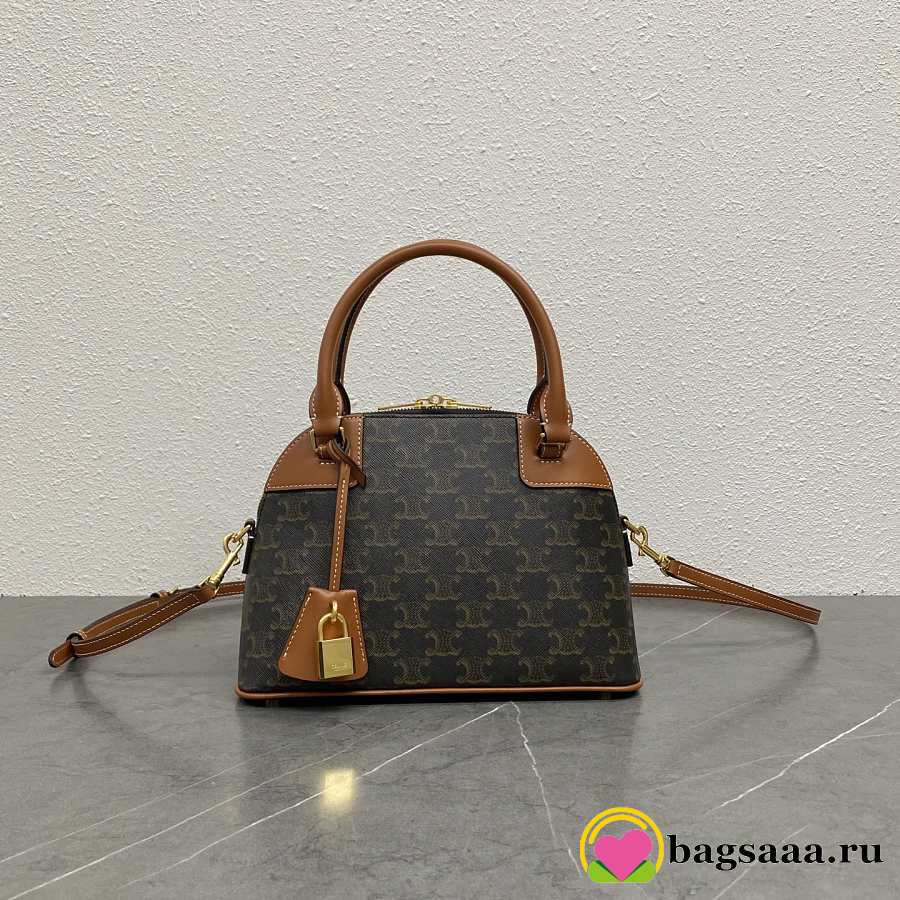 Bagsaaa Celine Small Bowling bag in Triomphe Canvas and Calfskin leather brown - 25cm