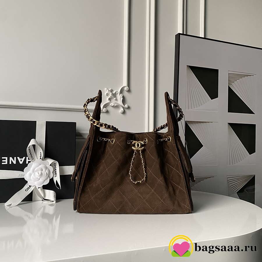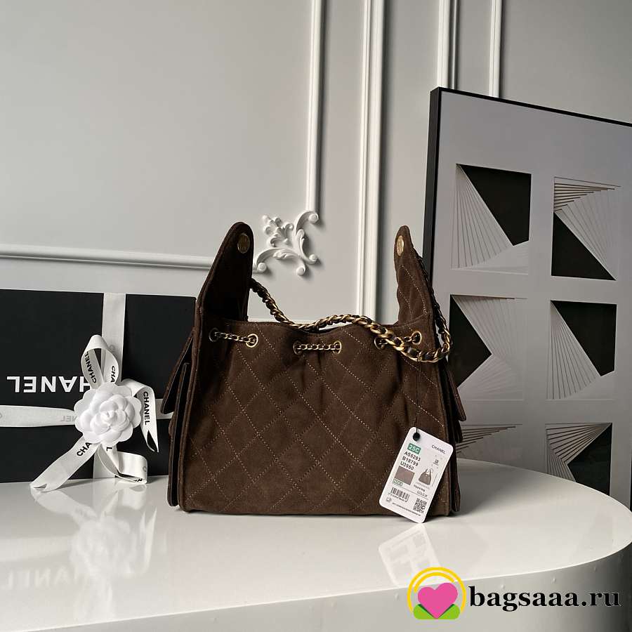 Bagsaaa CHANEL 25 Small Handbag AS5293 Dark Brown suede - 30cm