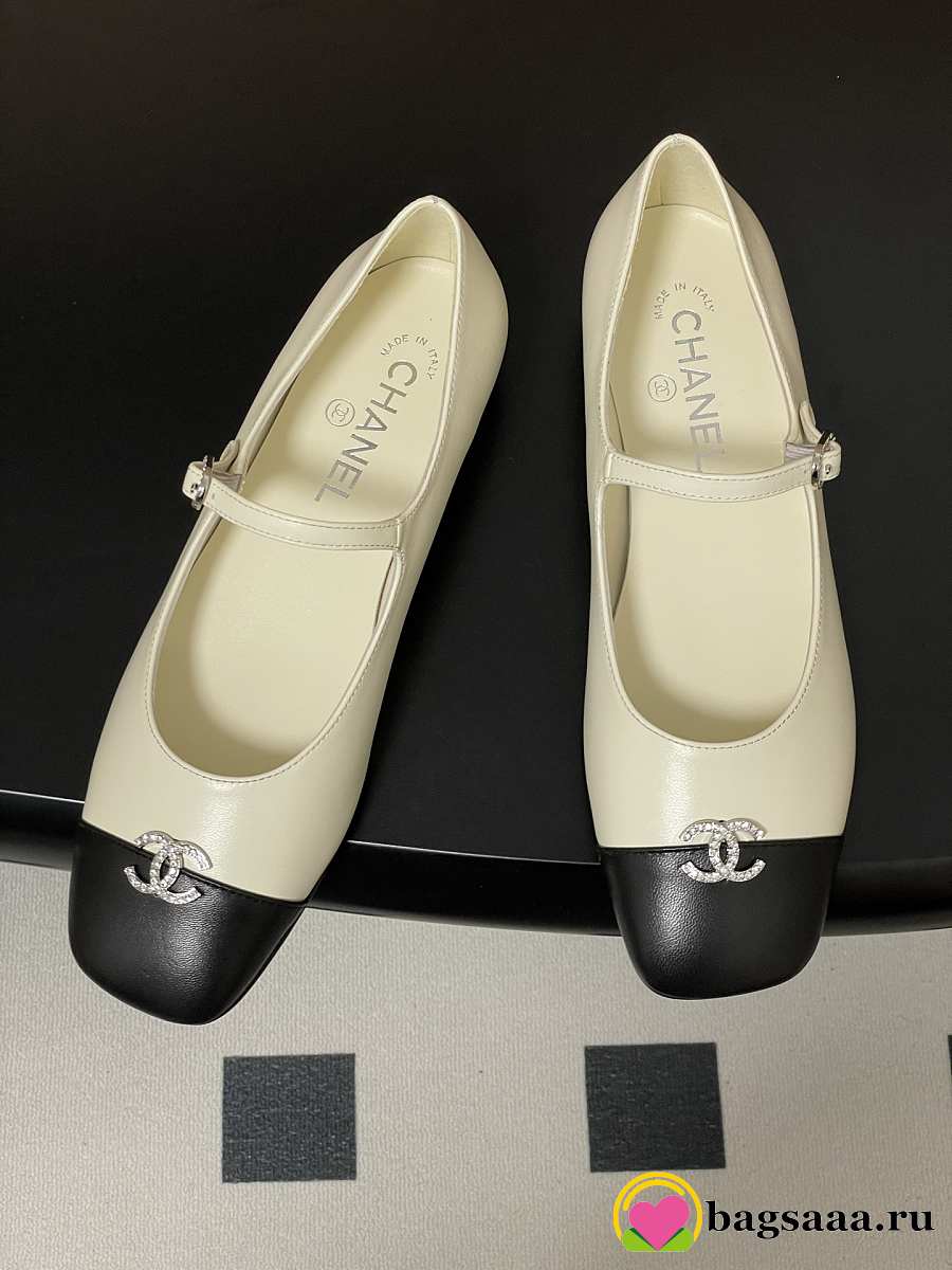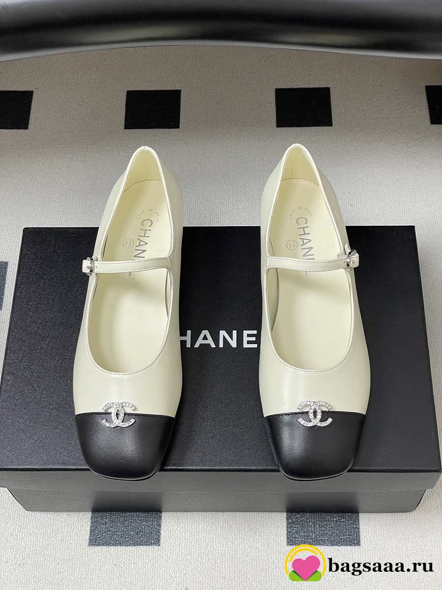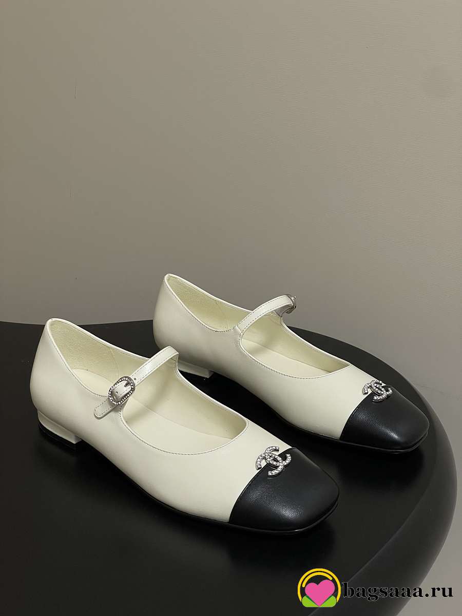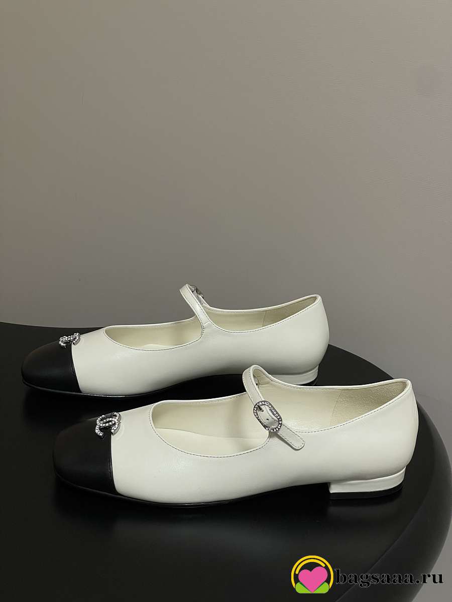 Bagsaaa Chanel black & white Mary Jane flats with crystal-embellished CC