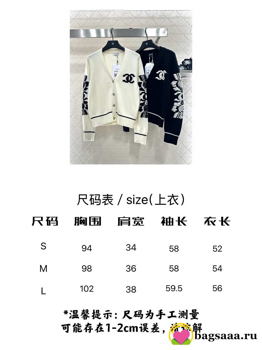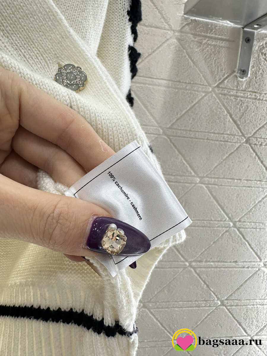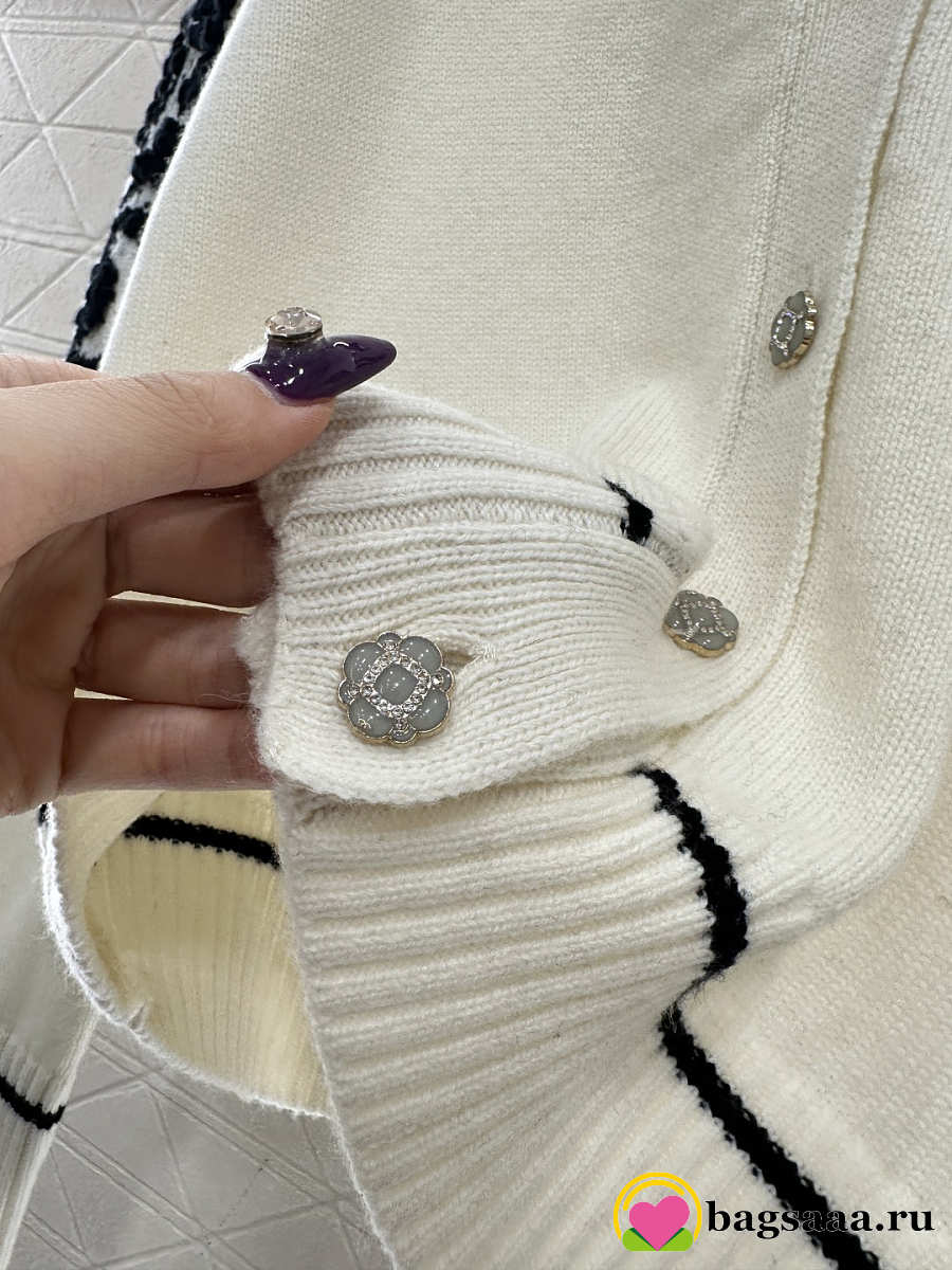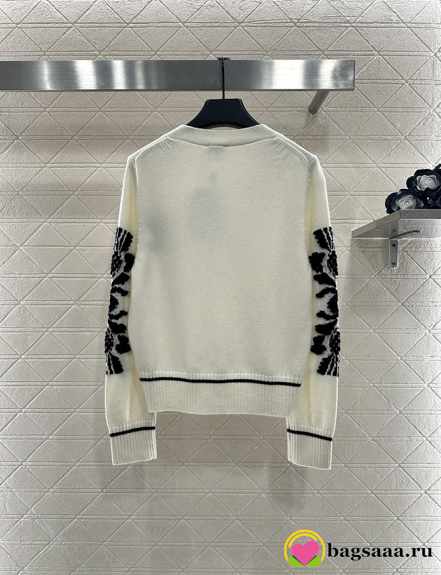 Bagsaaa Chanel cardigan in white with black floral appliqués
