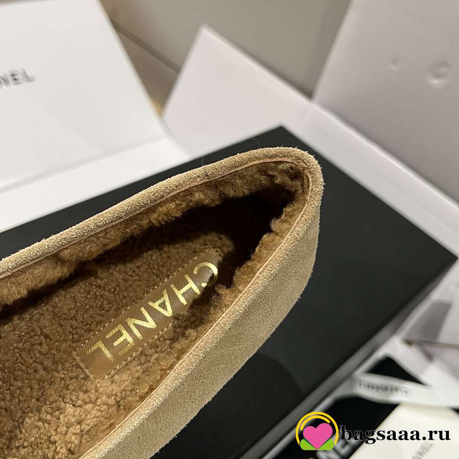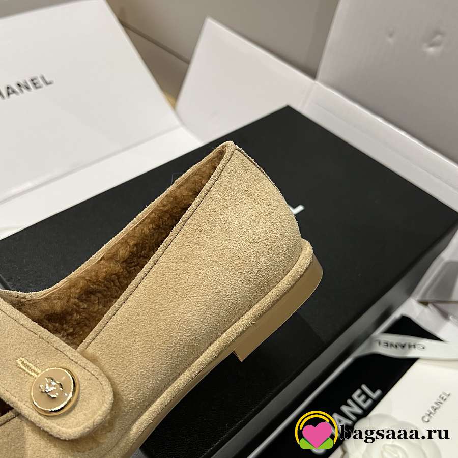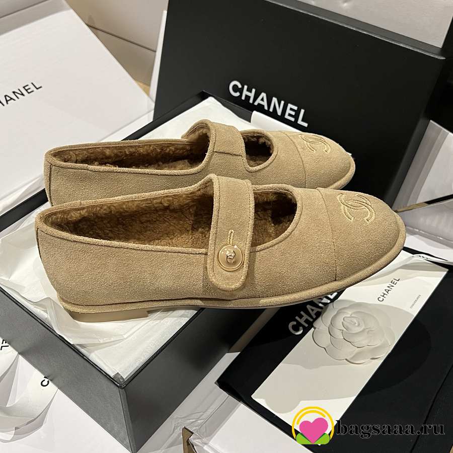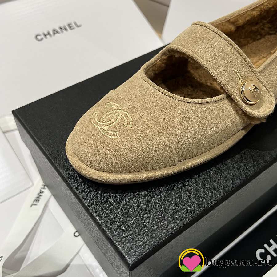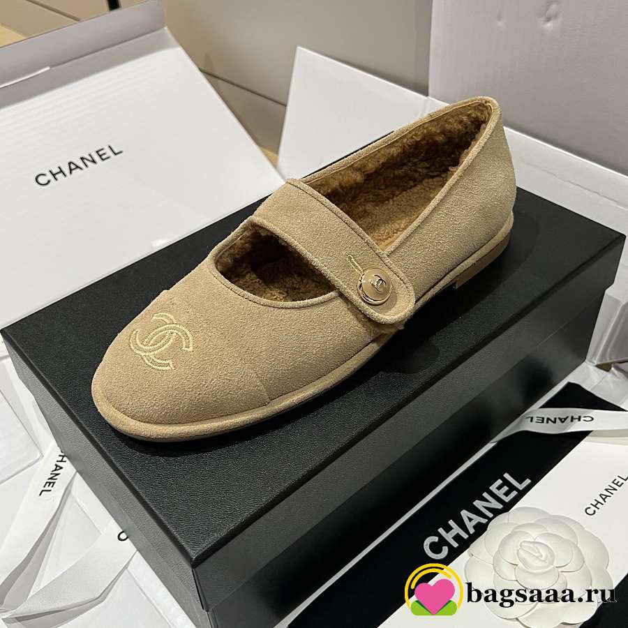 Bagsaaa Chanel Mary Jane flat shoes in beige suede with shearling