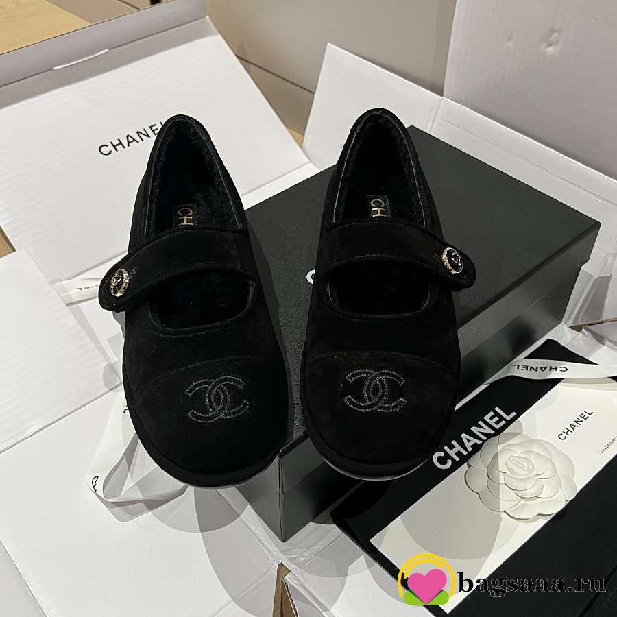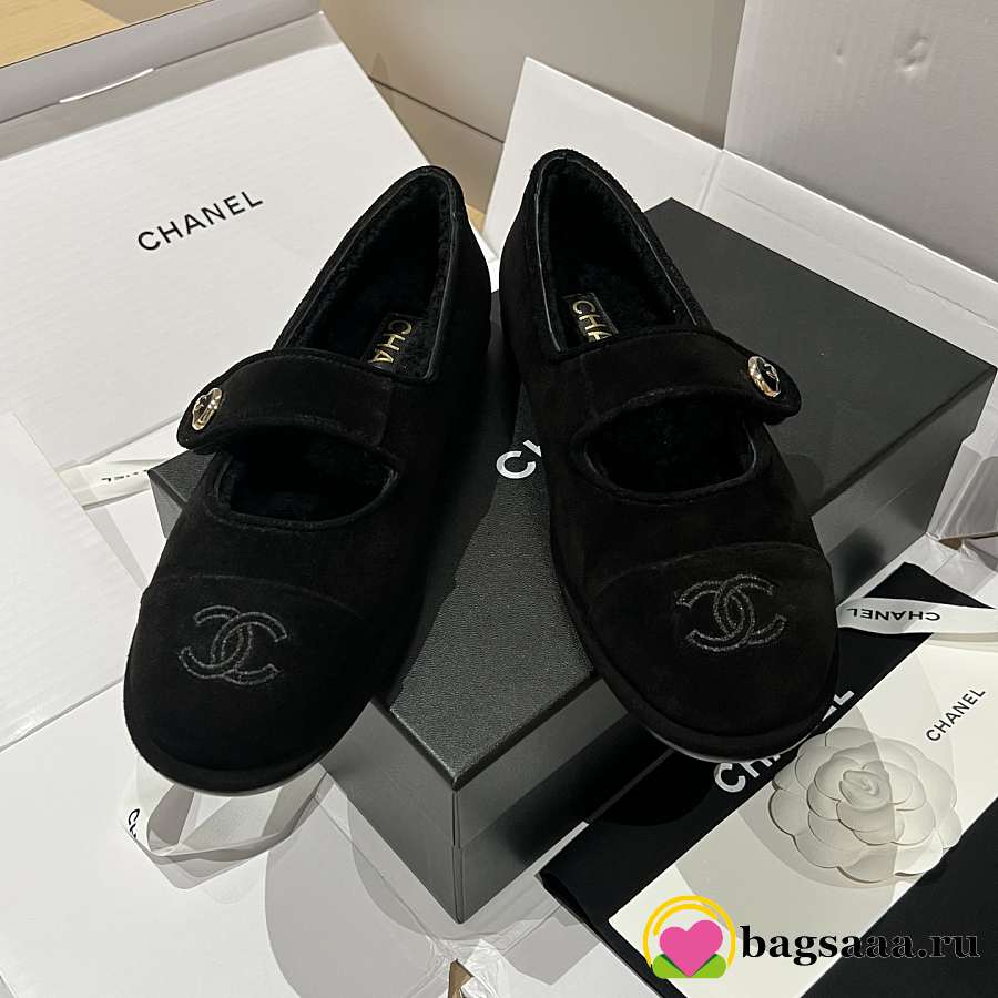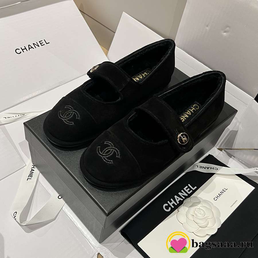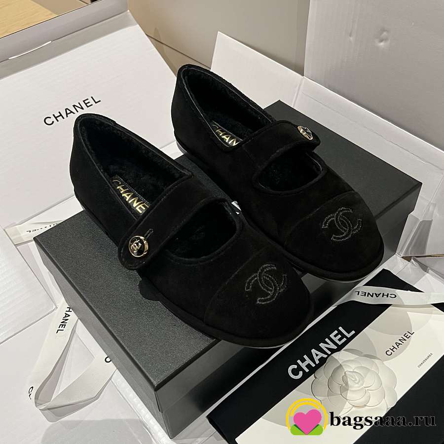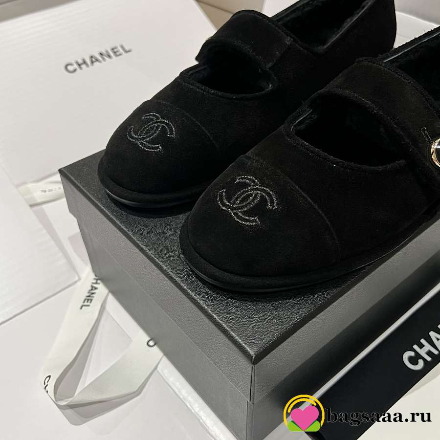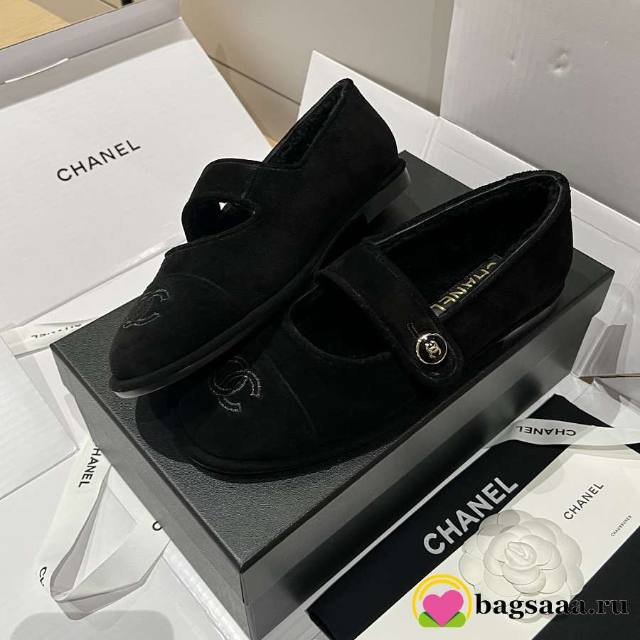 Bagsaaa Chanel Mary Jane flat shoes in black suede with shearling
