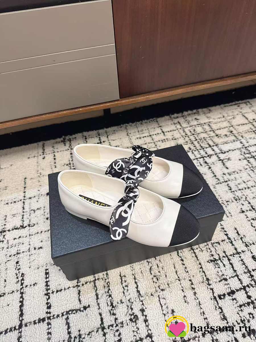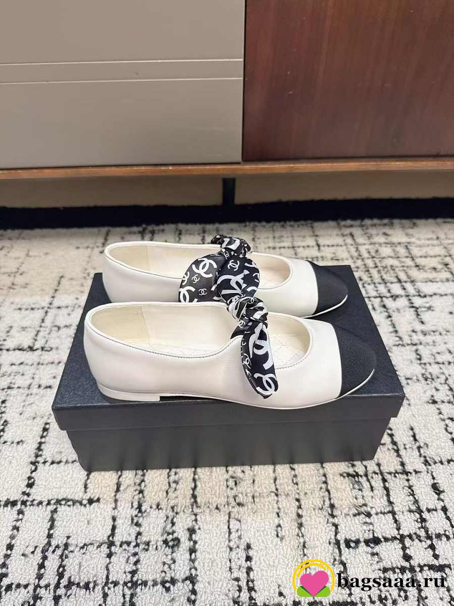 Bagsaaa Chanel Mary Janes G46937 White Lambskin & Silk