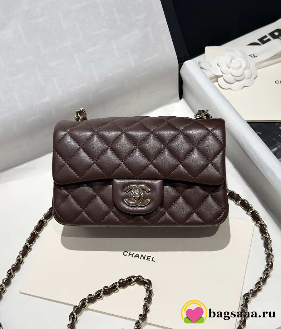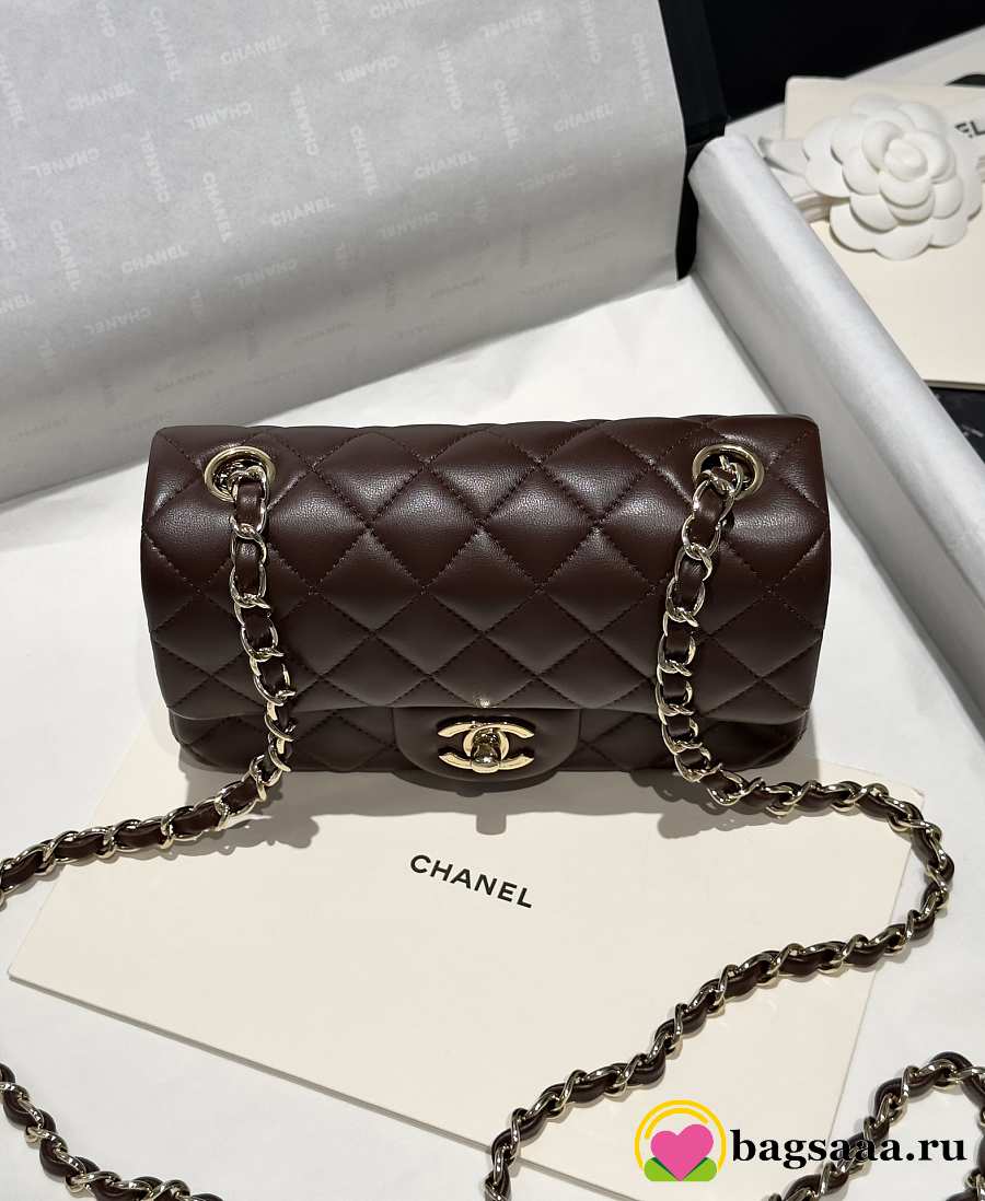 Bagsaaa Chanel Mini Classic Flap handbag in dark brown - 20cm