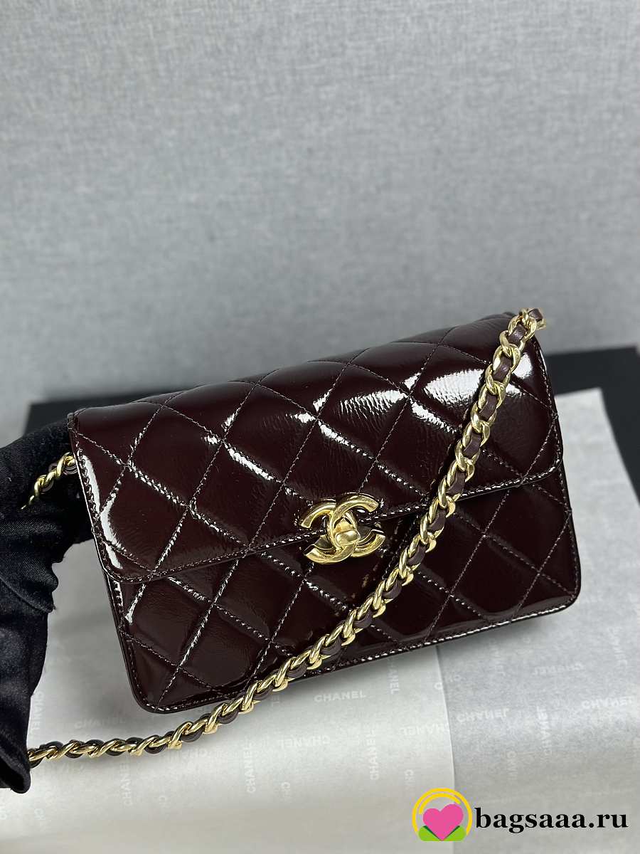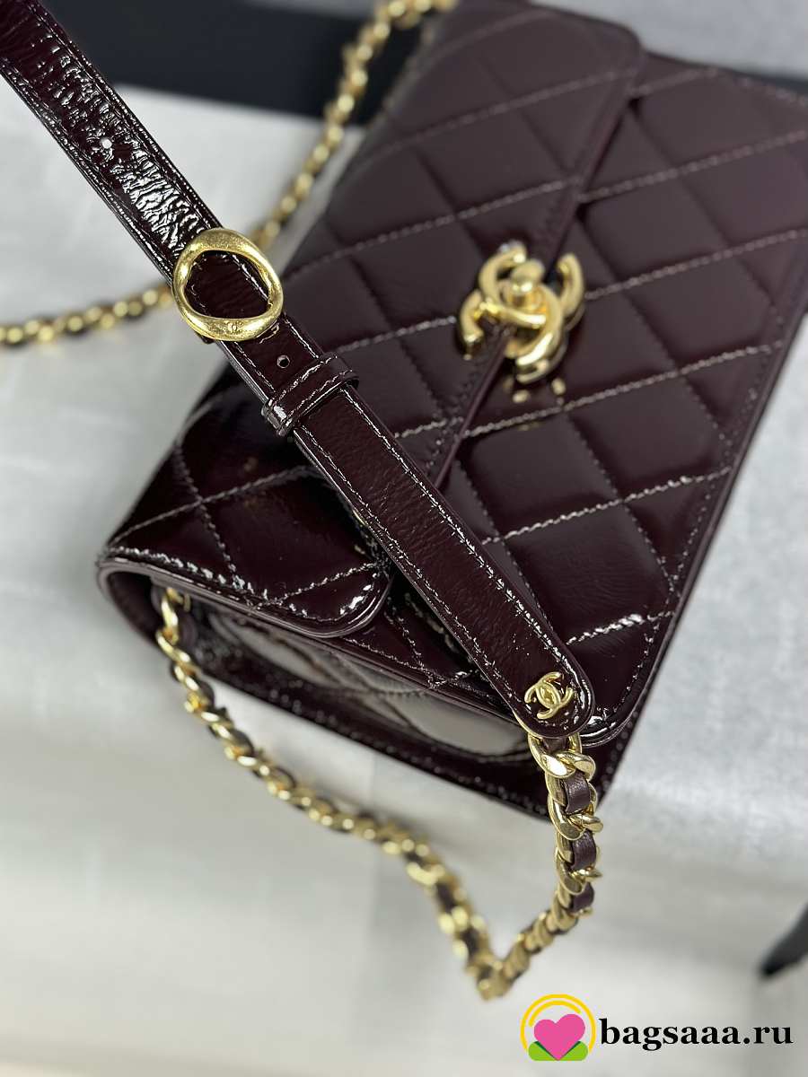 Bagsaaa Chanel Mini Flap Bag AS5618 Dark Brown Patent - 19.5cm