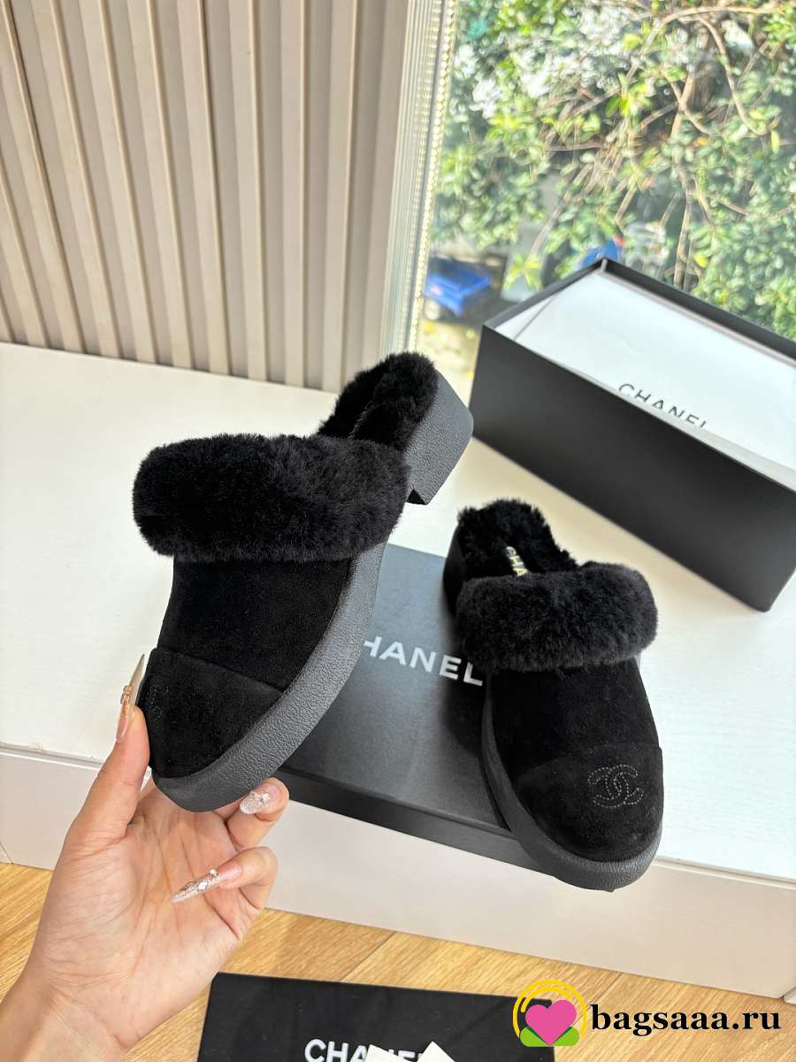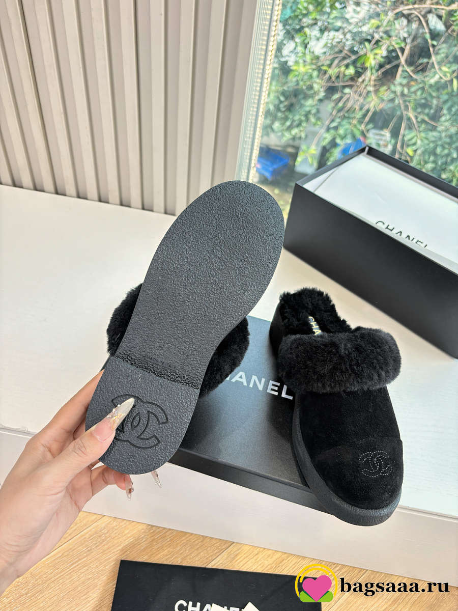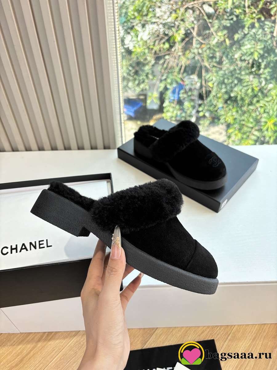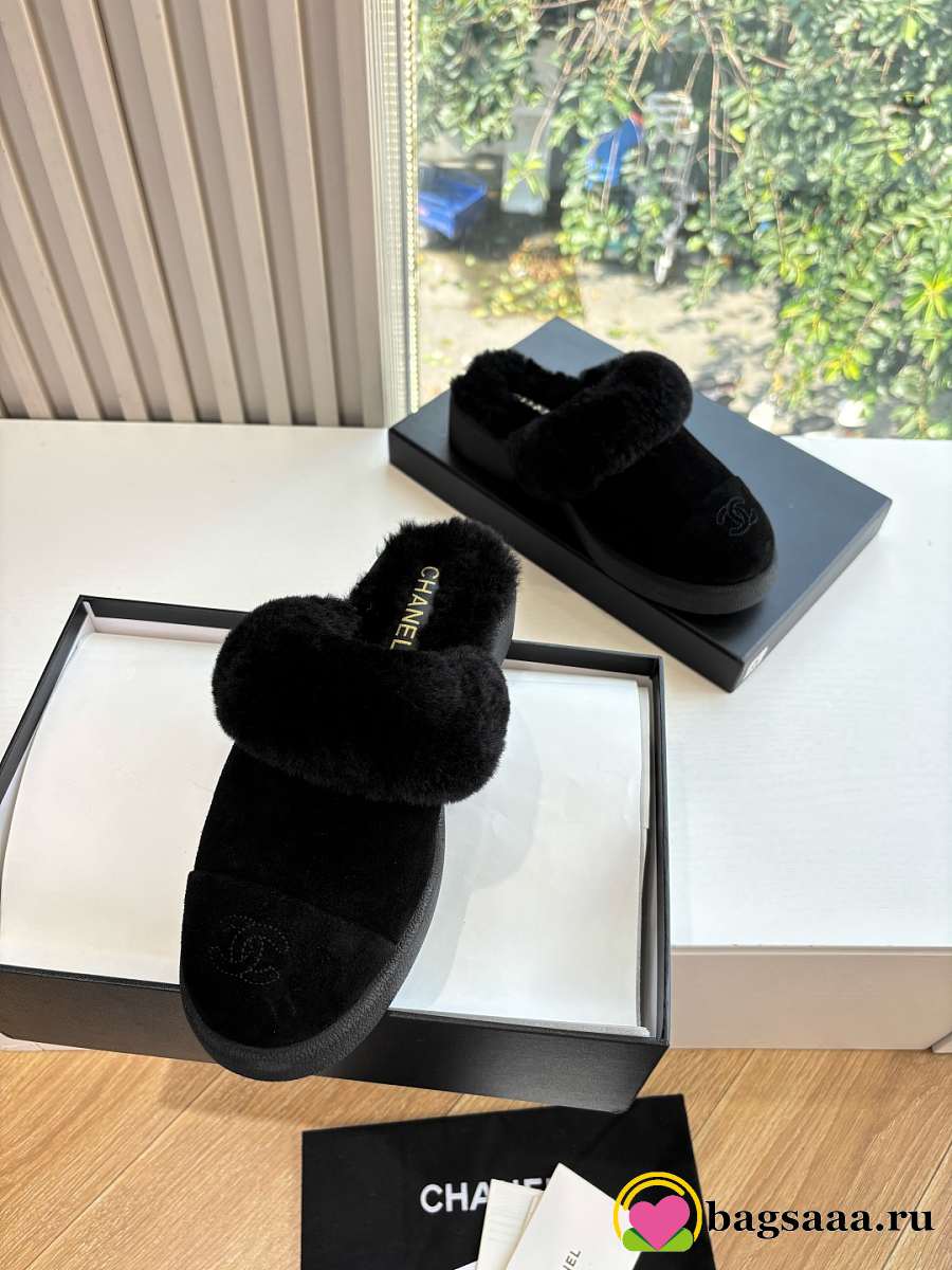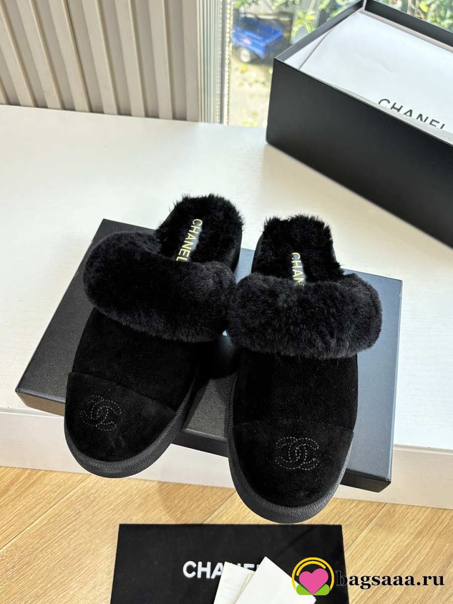 Bagsaaa Chanel Shearling Mules black