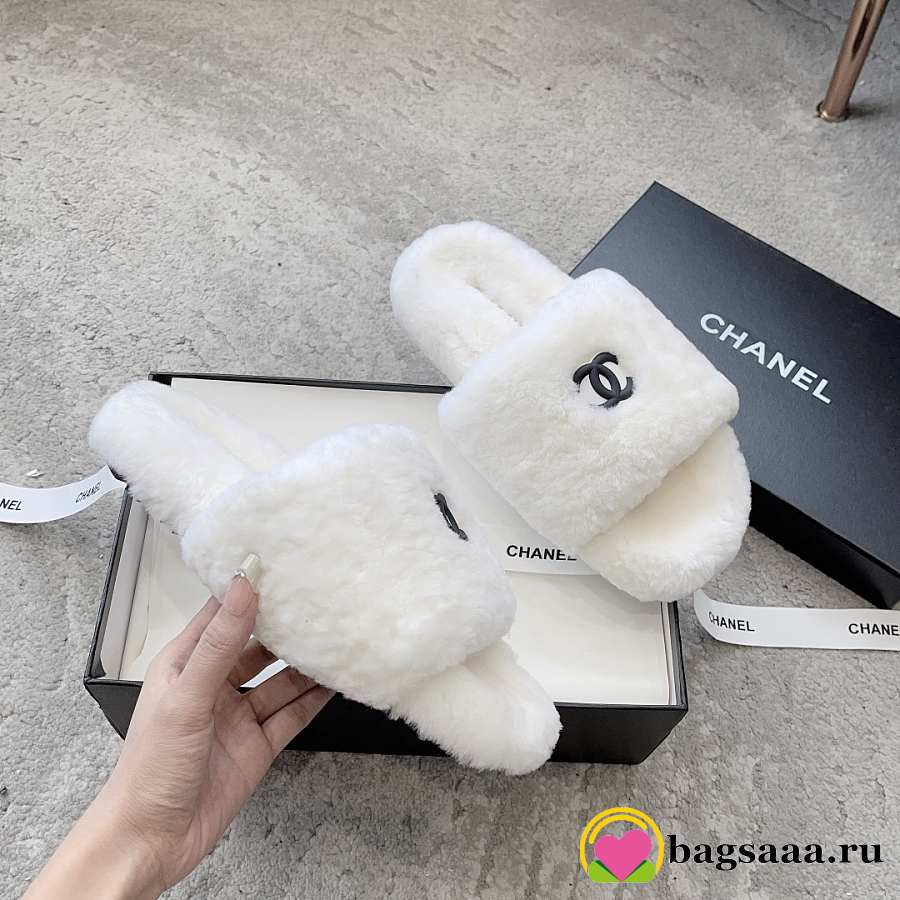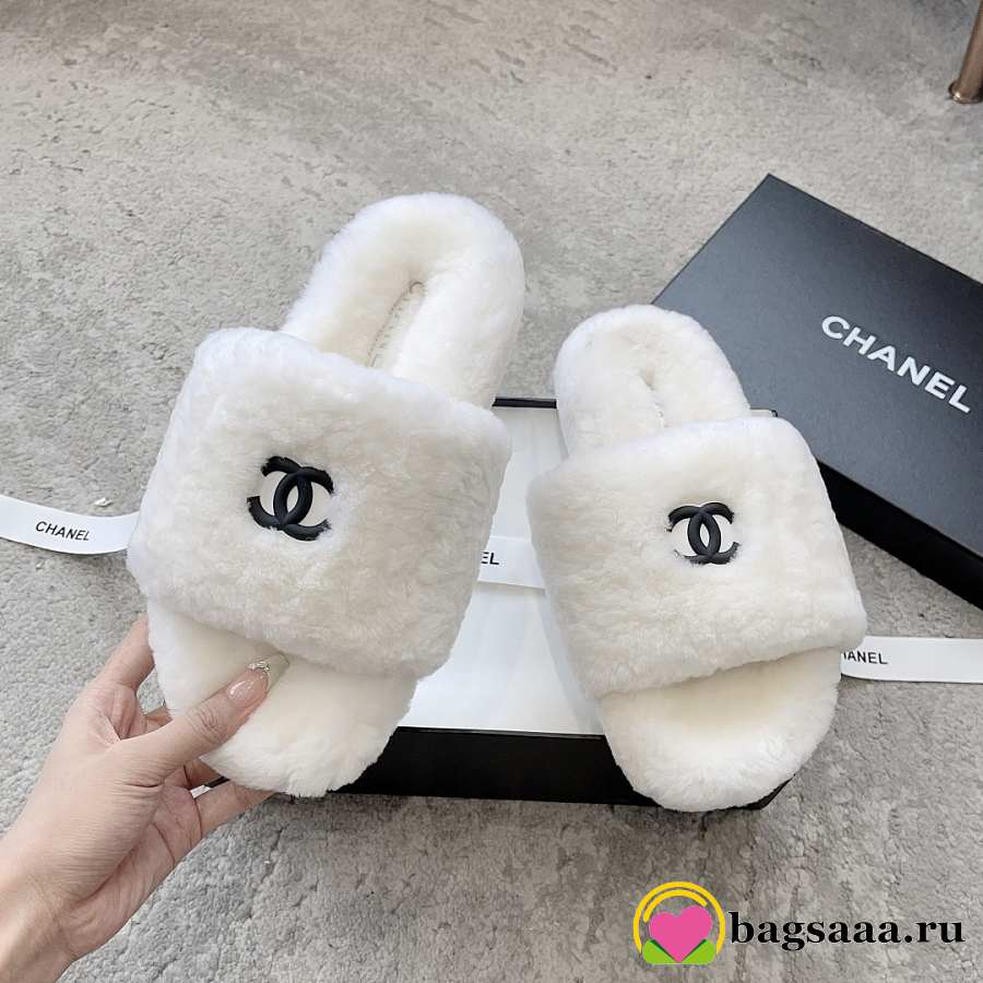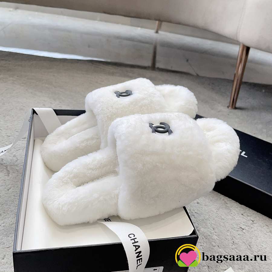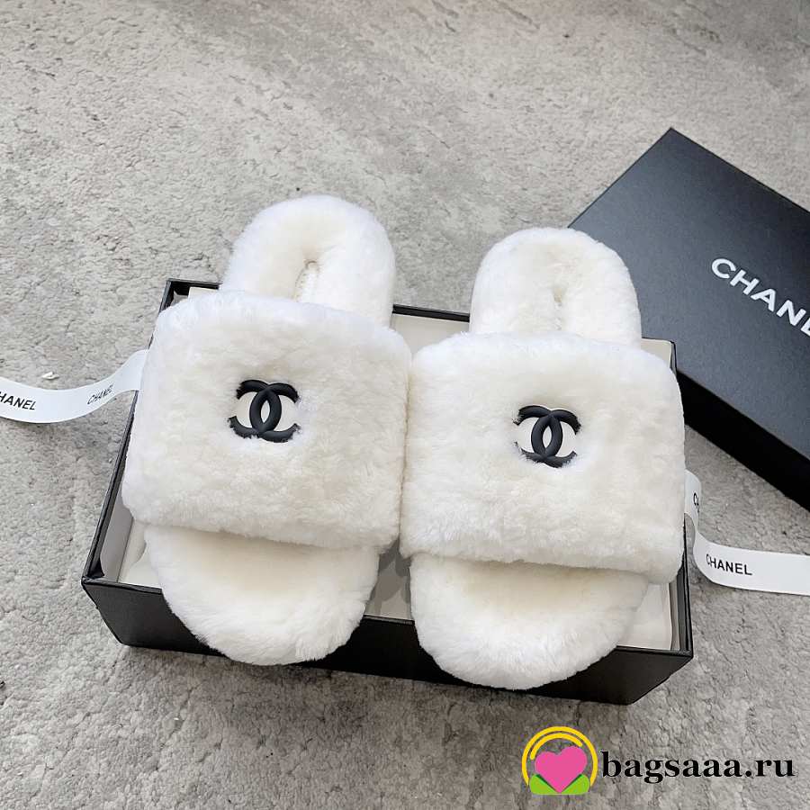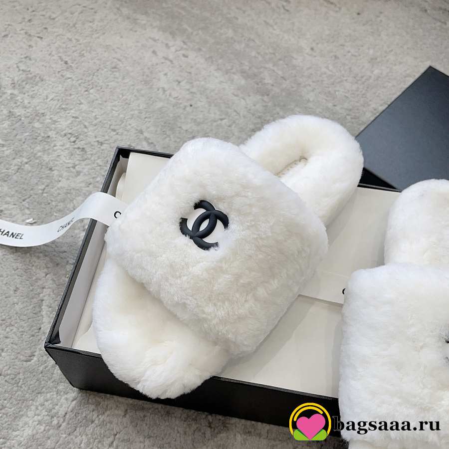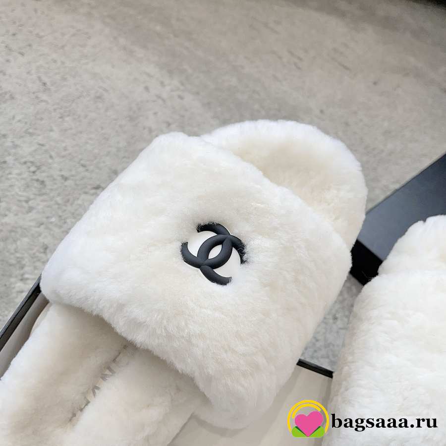 Bagsaaa Chanel white fuzzy slippers with the CC logo