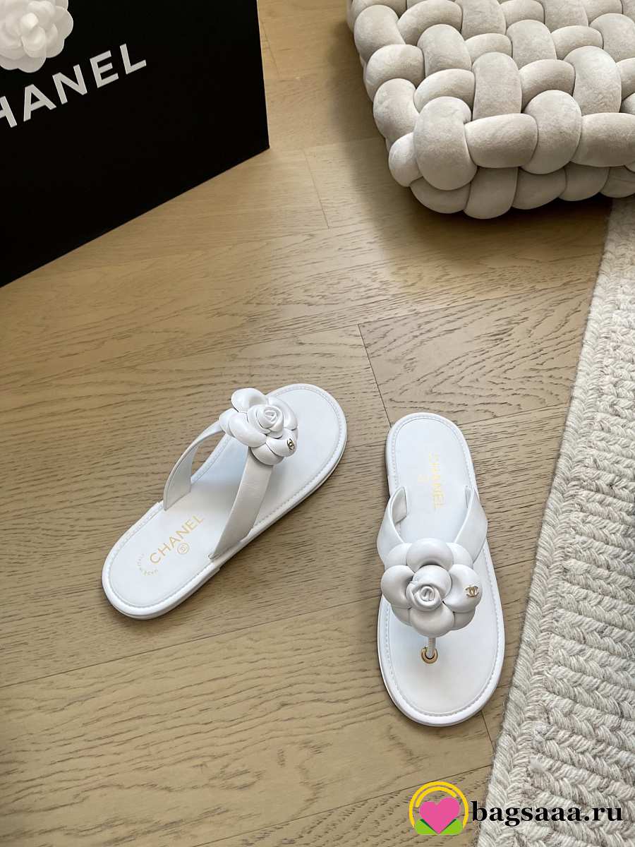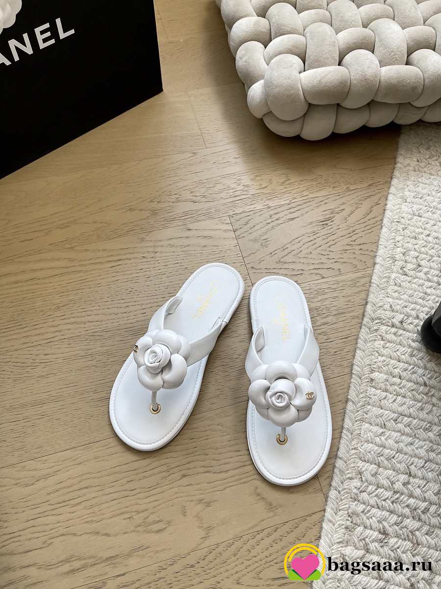 Bagsaaa Chanel white jelly Camellia thong flat sandals