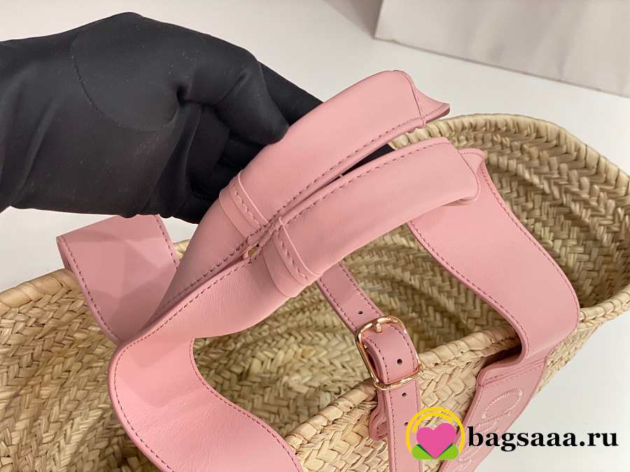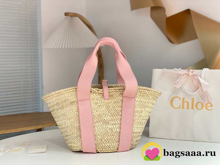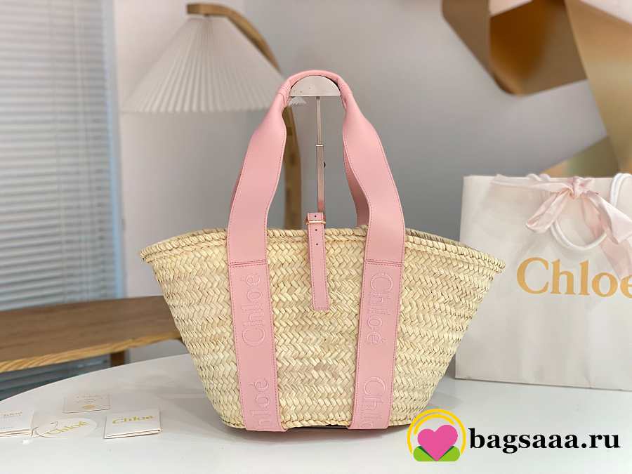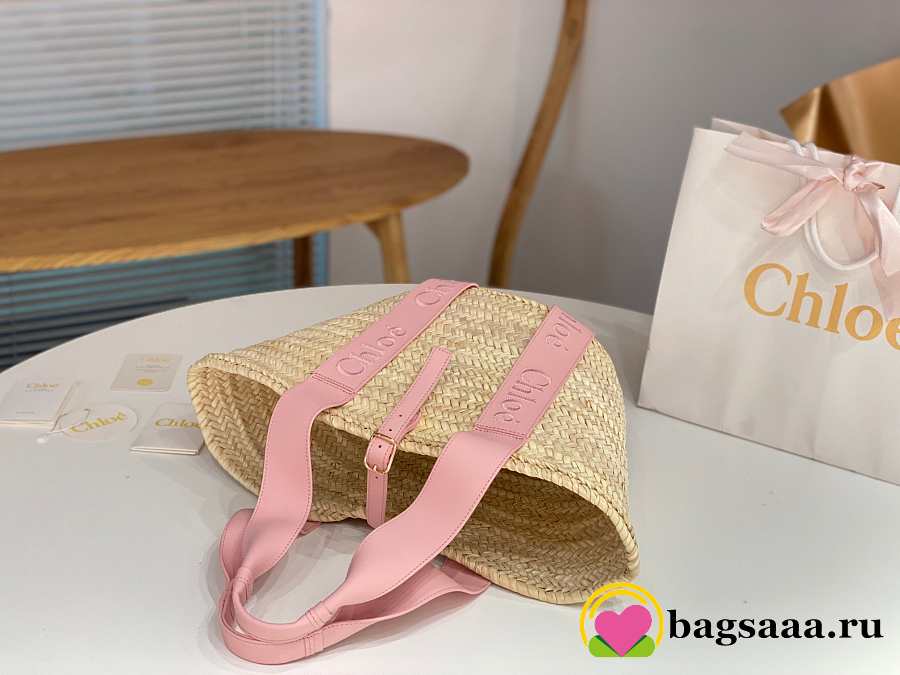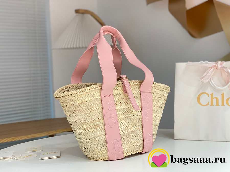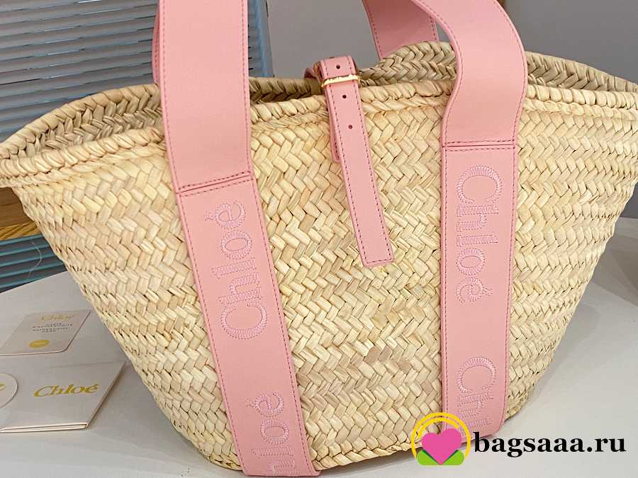Bagsaaa Chloé Sense Medium Basket Bag in raffia with pink calf leather straps - 45cm
