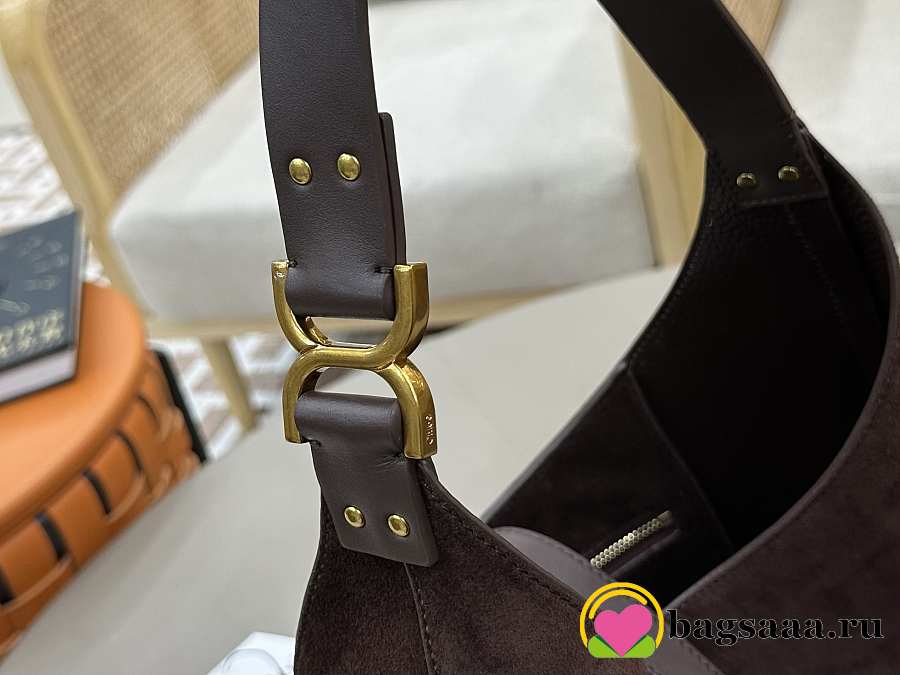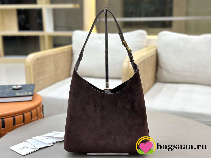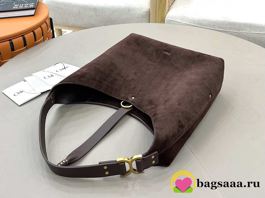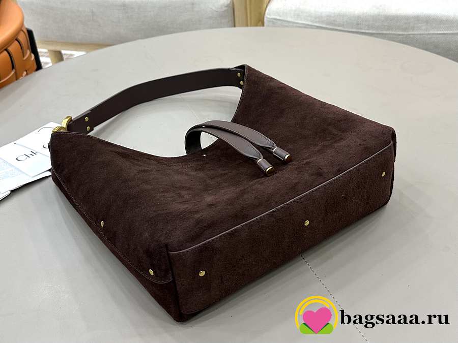 Bagsaaa Chloé small Marcie hobo bag in dark brown suede material - 29cm