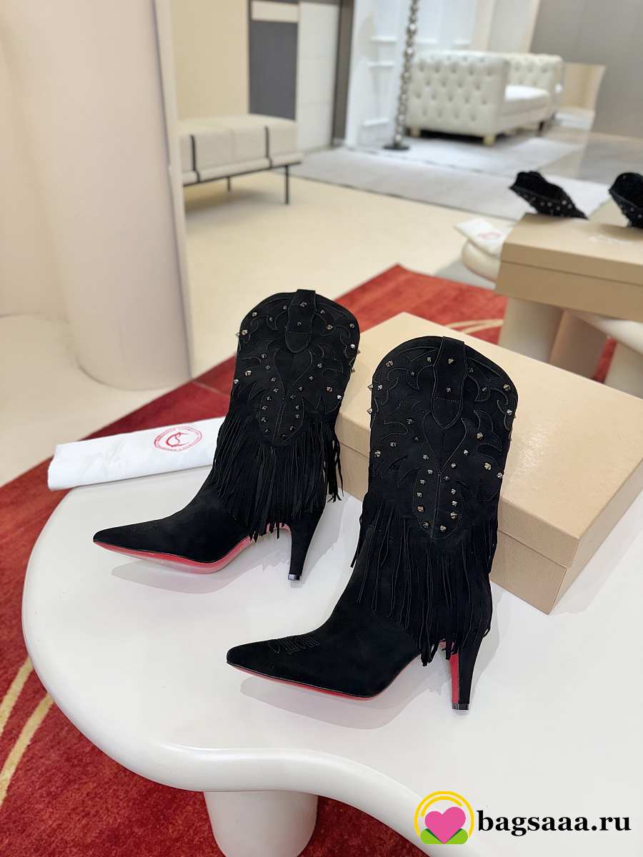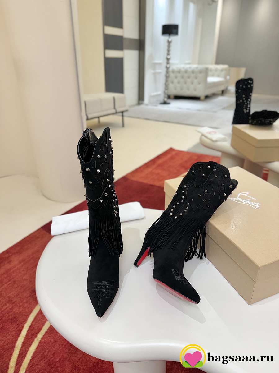 Bagsaaa Christian Louboutin Santia Fringe 85mm boots in black
