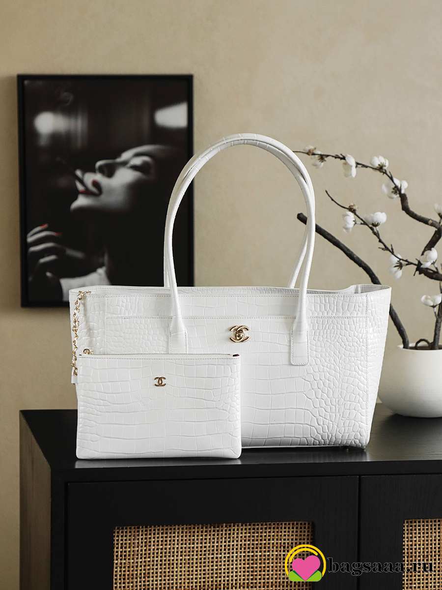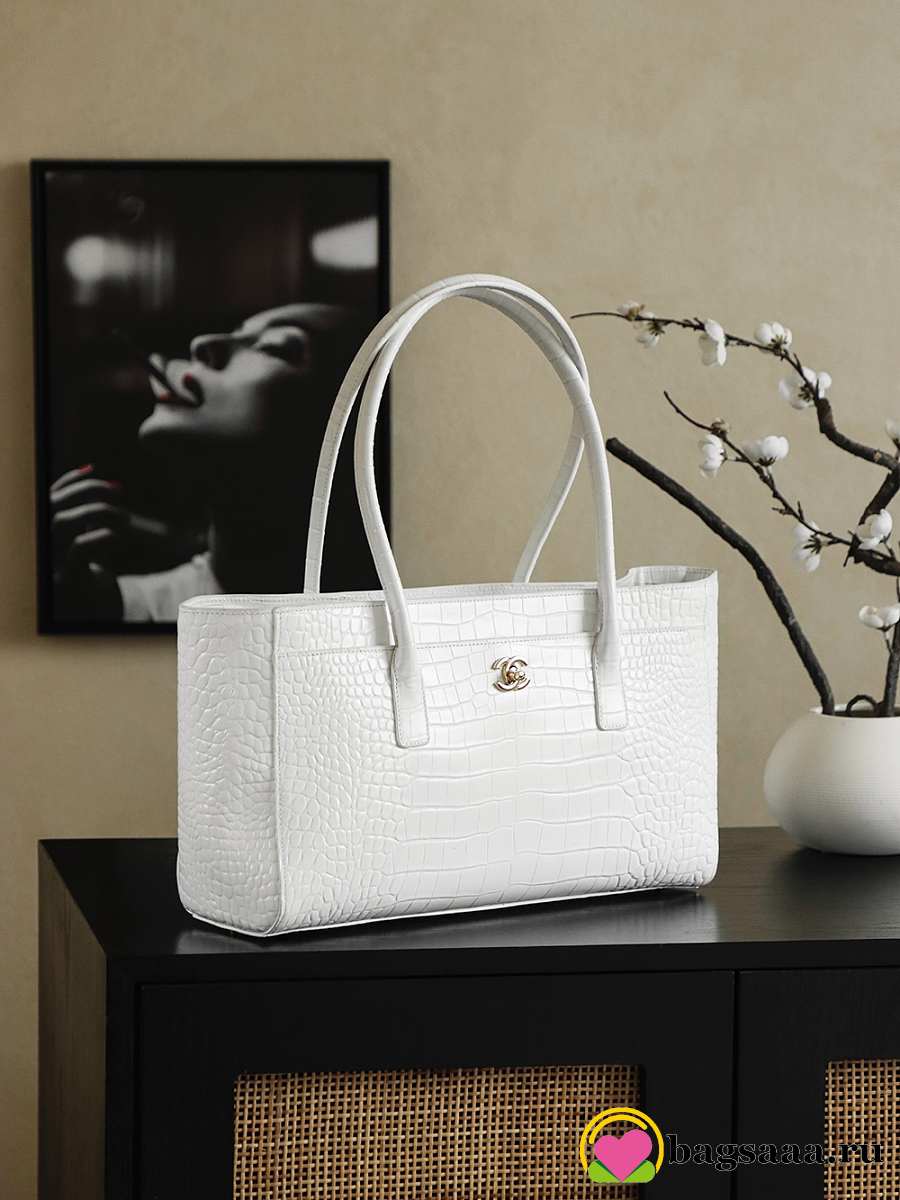 Bagsaaa crocodile-embossed Chanel Cerf or Executive tote bag in white - 40cm