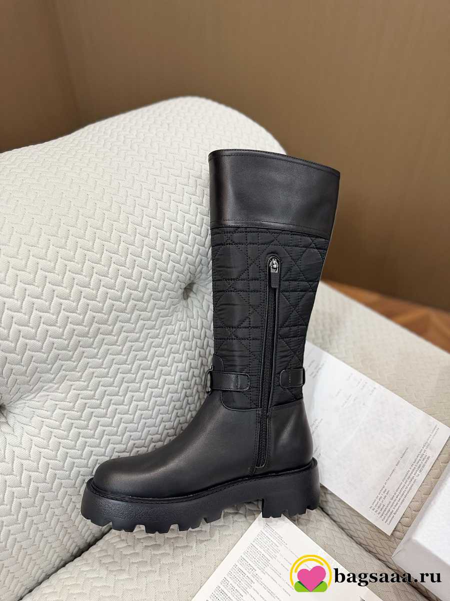 Bagsaaa Dior D-Town Boot Black Calfskin and Nylon with Embroidered Cannage Motif