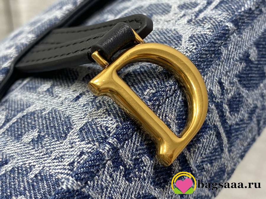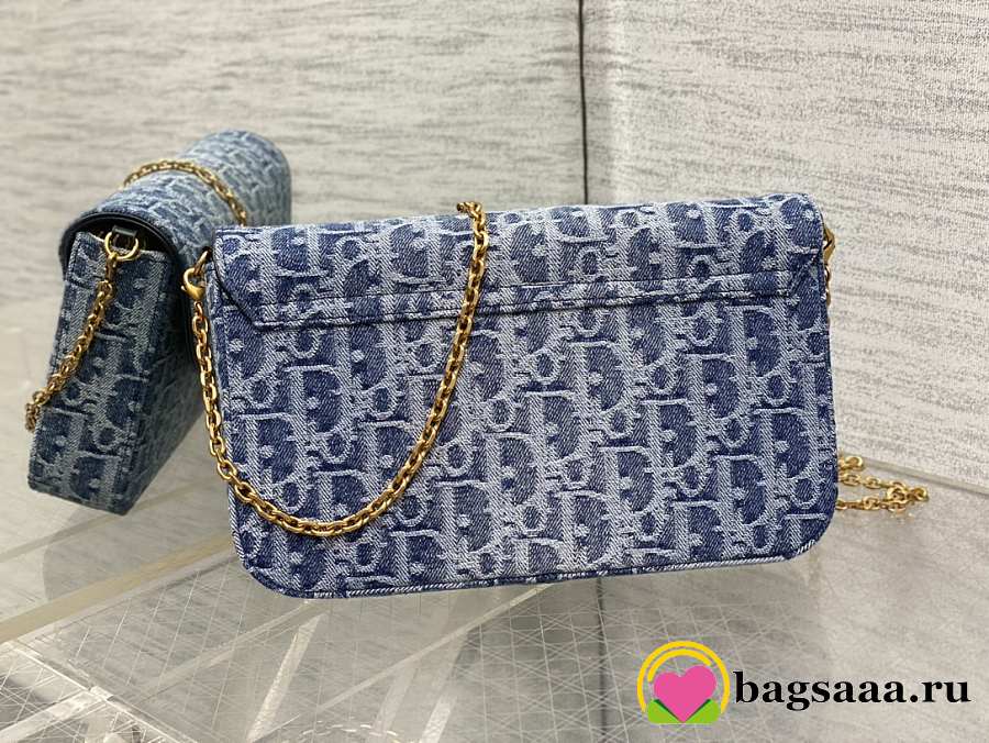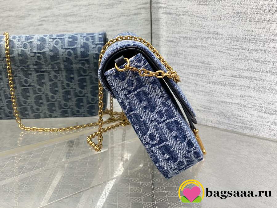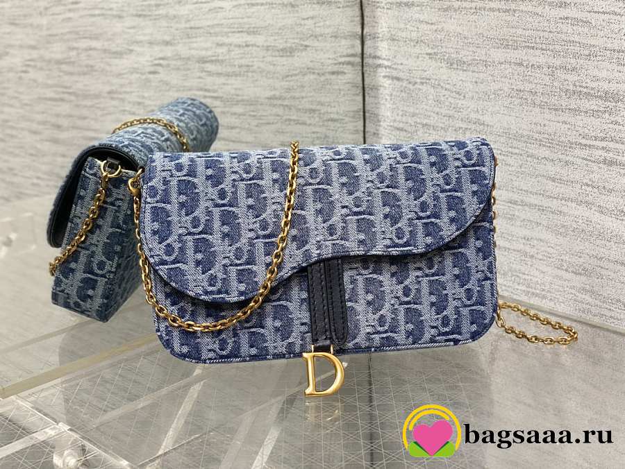 Bagsaaa Dior Medium Saddle Pouch with Chain Blue Denim Dior Oblique Jacquard - 21.5cm