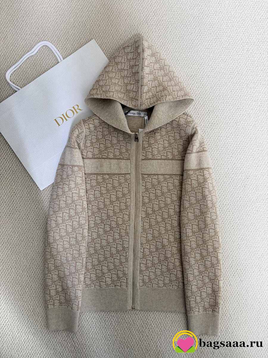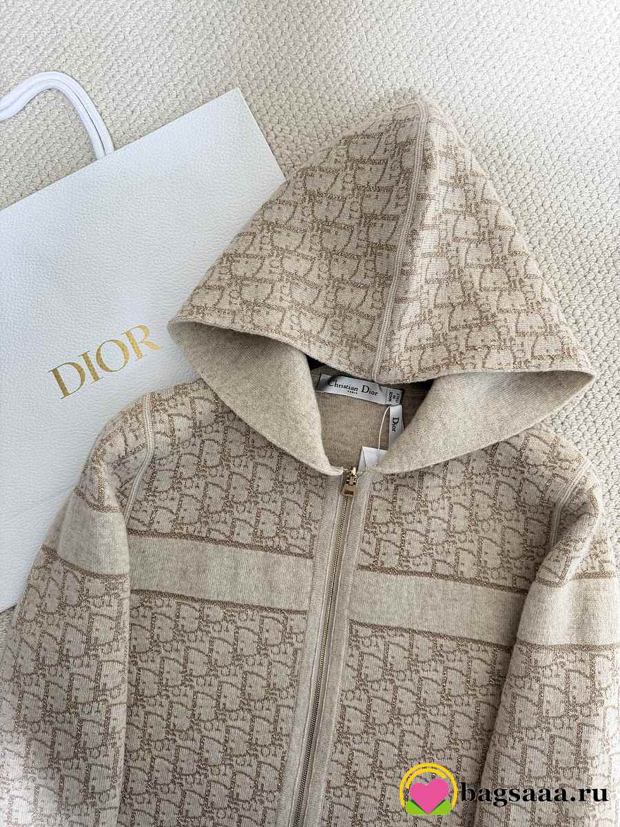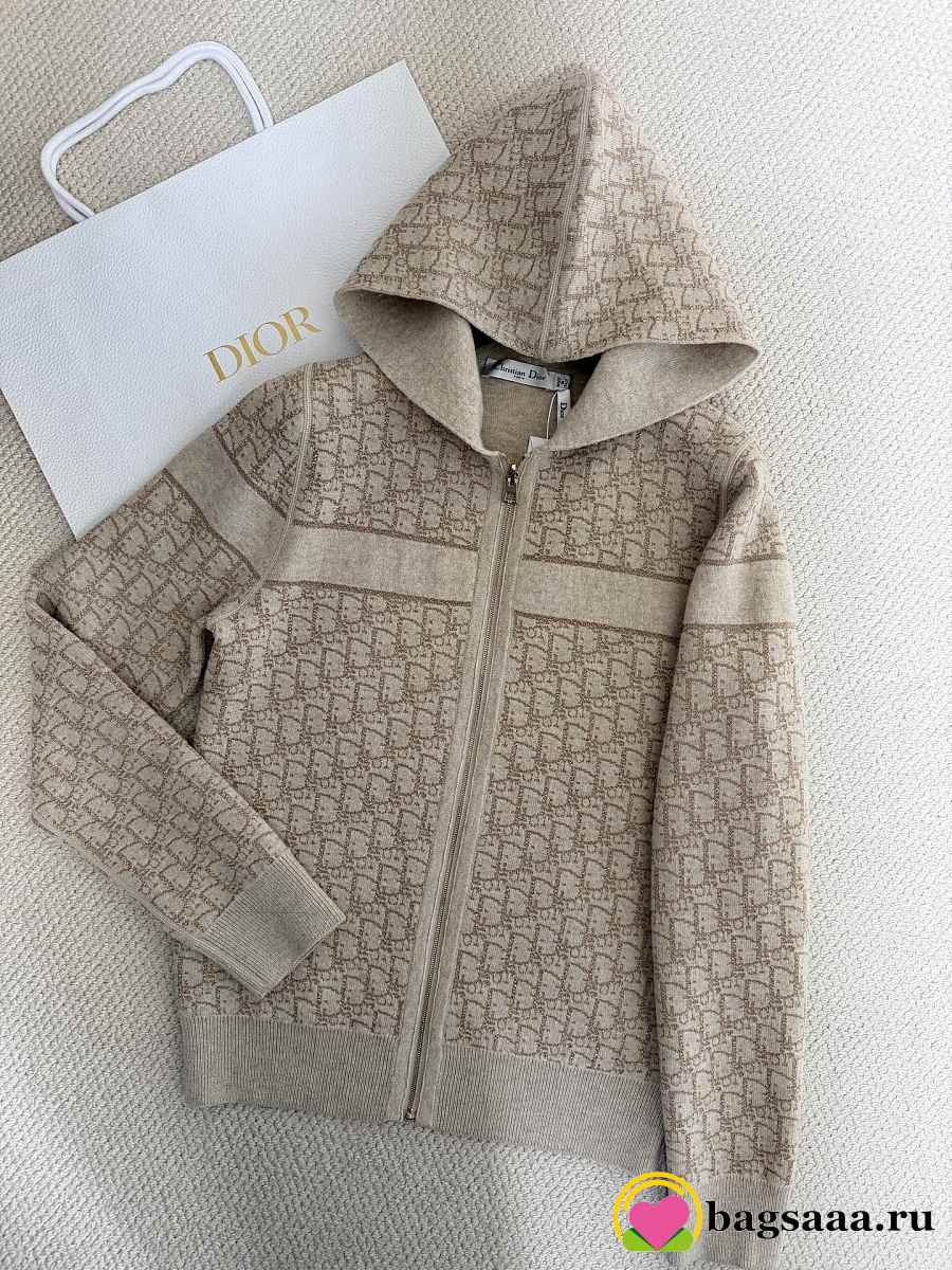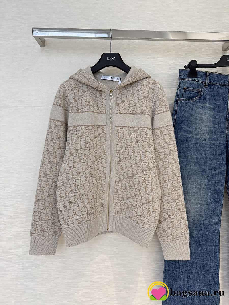 Bagsaaa Dior Reversible Zipped Cardigan with Hood Gold-Tone Metallic Cashmere-Blend Knit