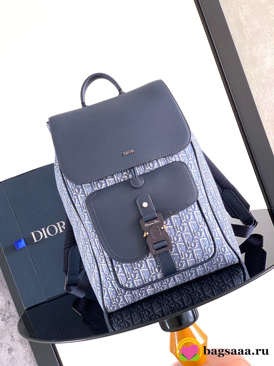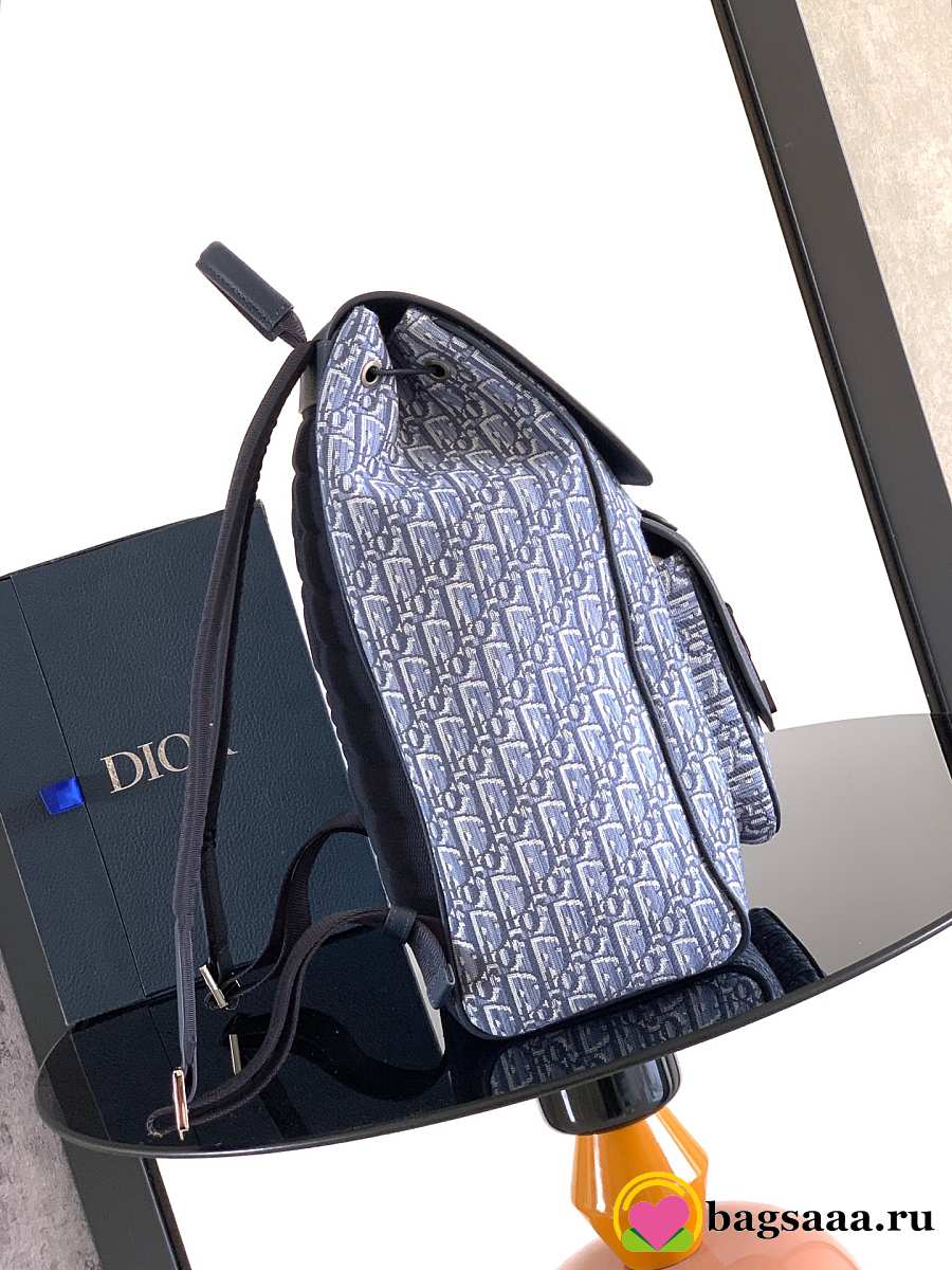 Bagsaaa Dior Saddle Backpack with Flap Blue Dior Oblique Jacquard and Blue Grained Calfskin - 41cm