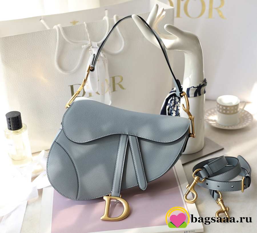Bagsaaa Dior Saddle Bag with Strap Light Blue Grained Calfskin - 25.5 x 20 x 6.5 cm