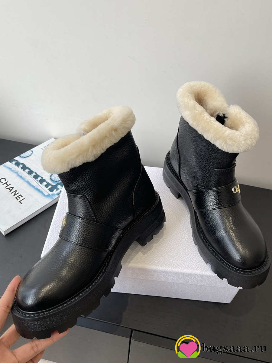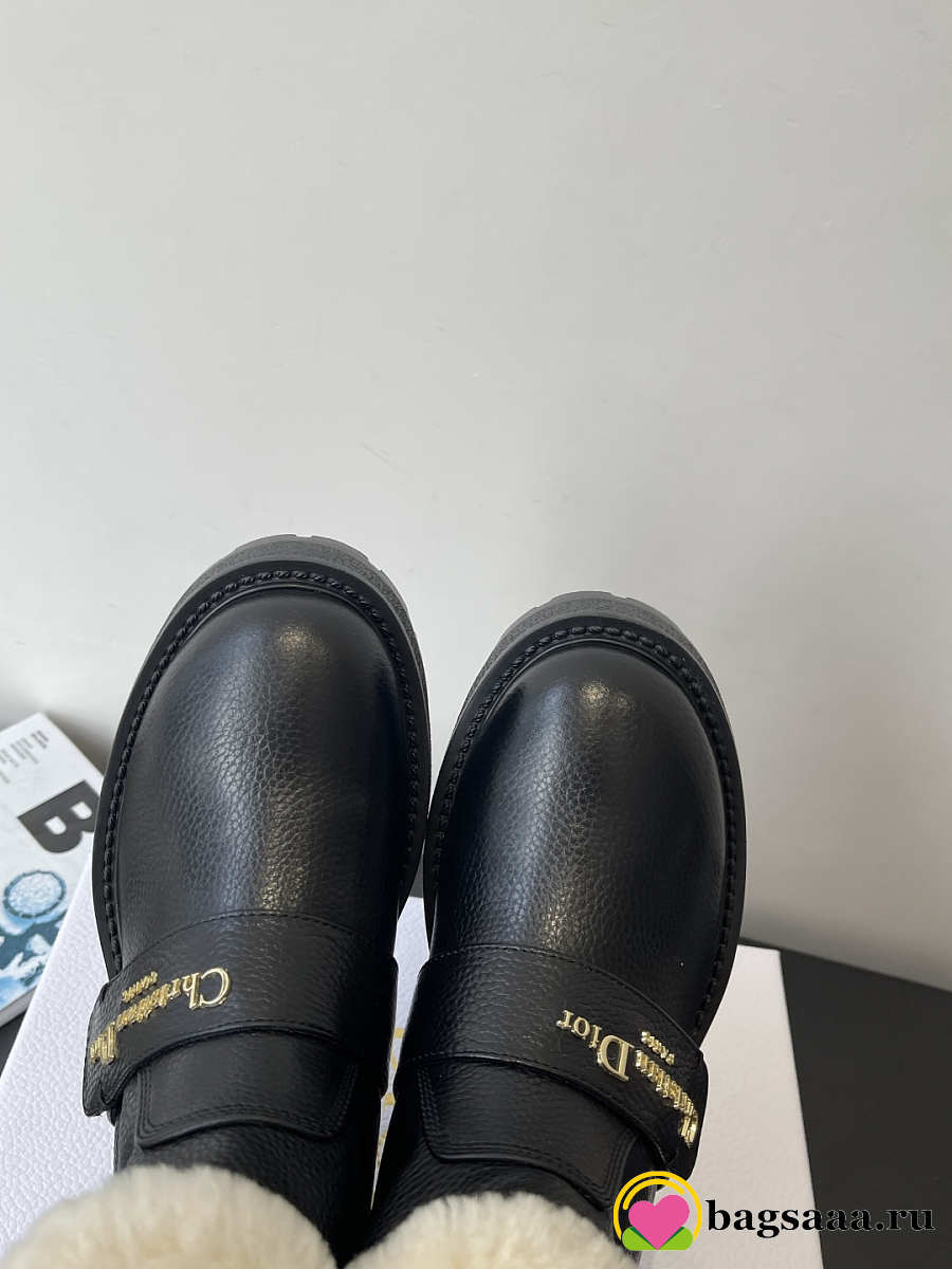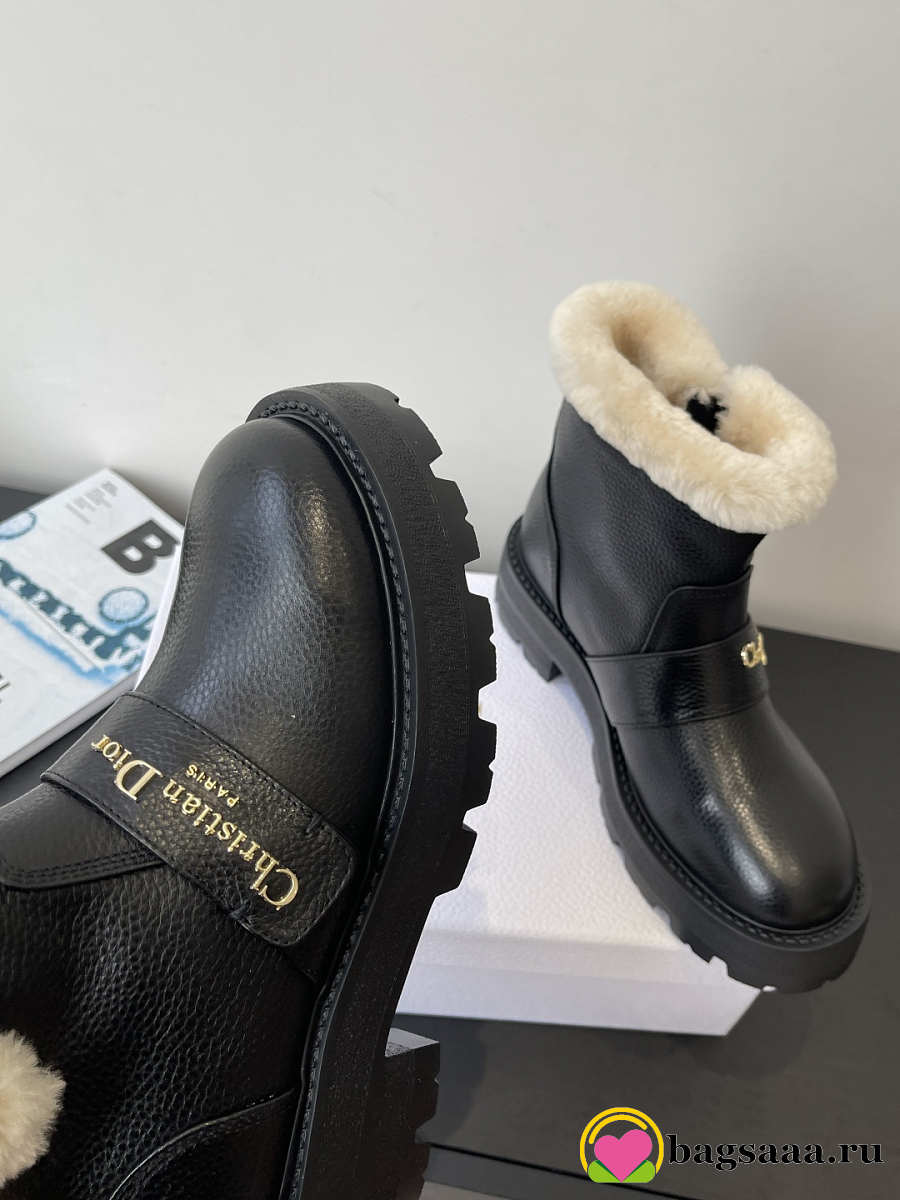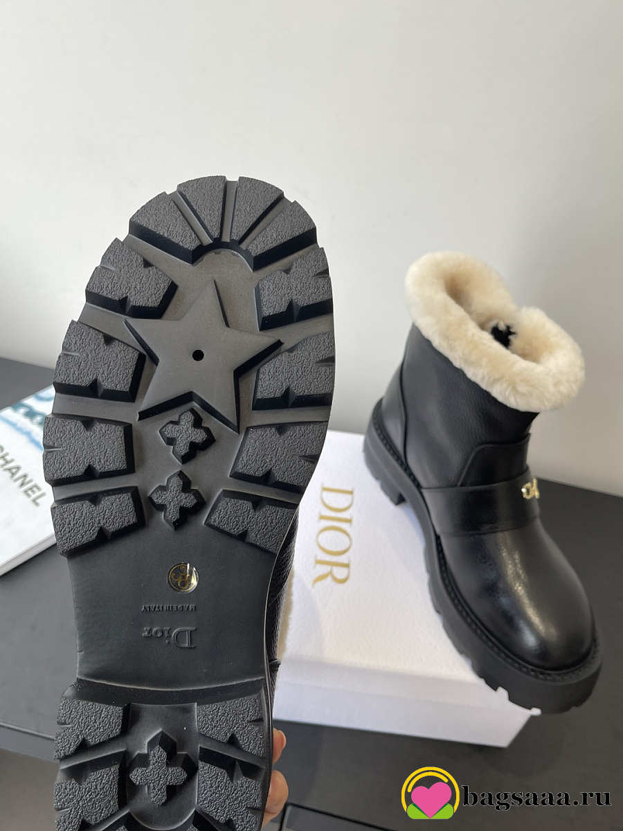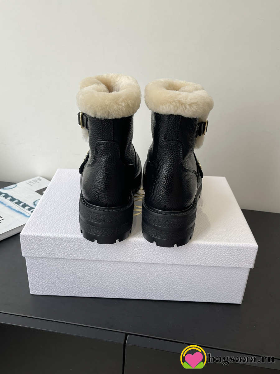 Bagsaaa DiorAlps D-Quest Ankle Boot Black Grained Calfskin and White Lambskin Shearling