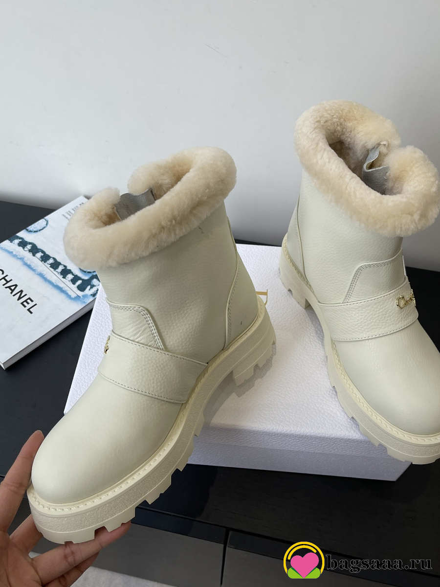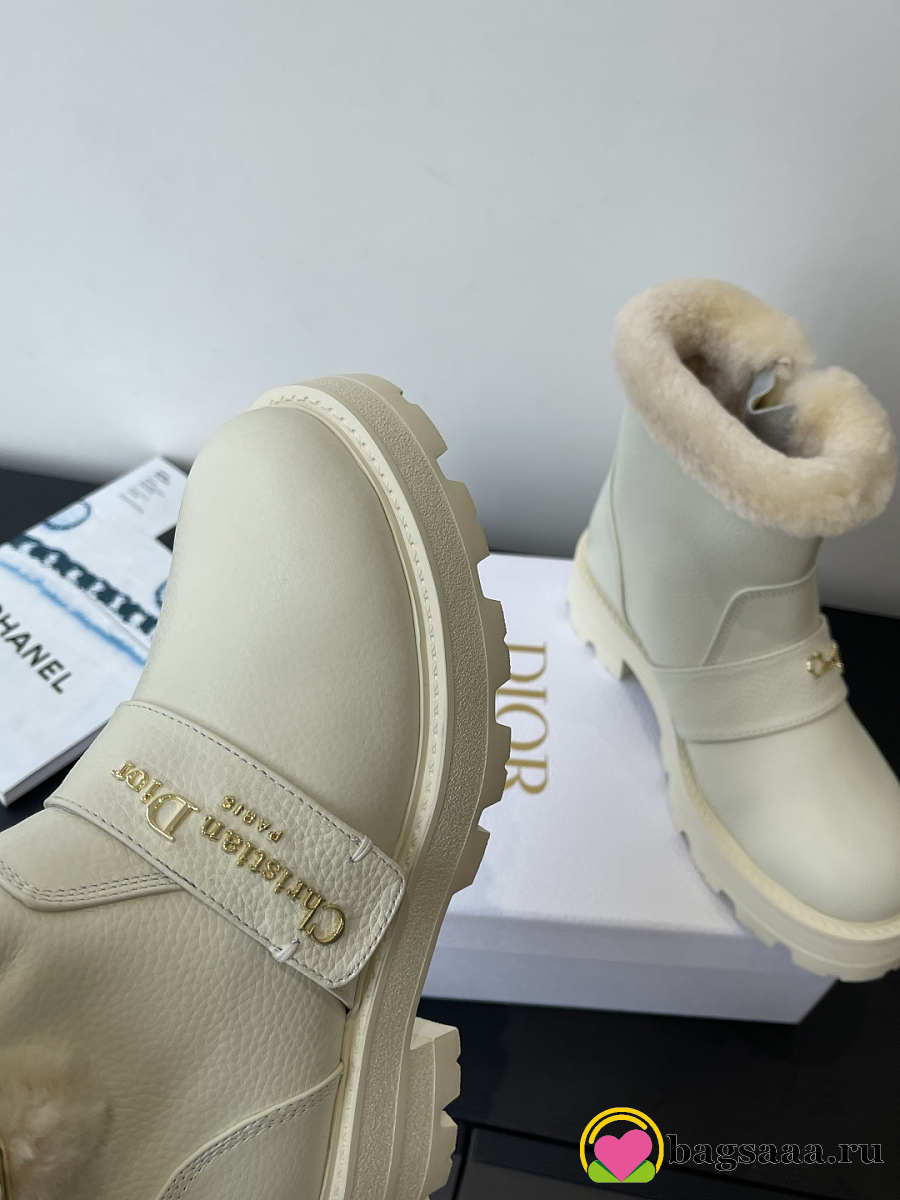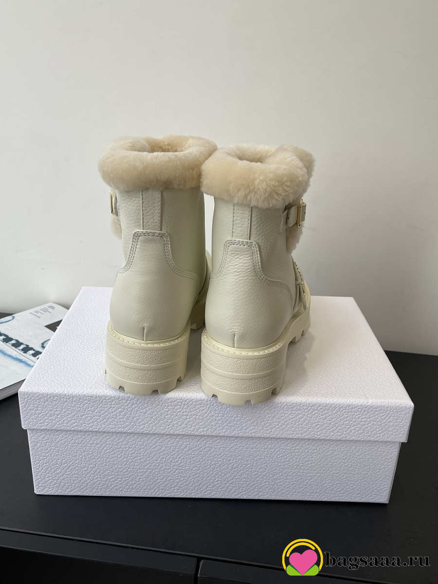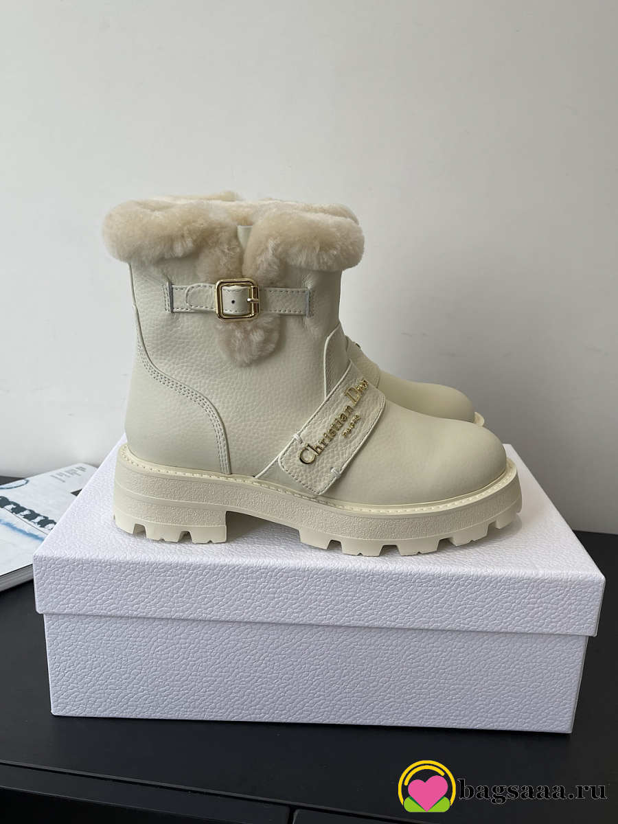 Bagsaaa DiorAlps D-Quest Ankle Boot White Grained Calfskin and Shearling