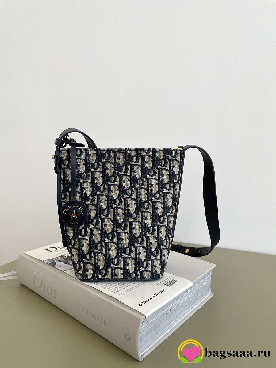 Bagsaaa Diorstar Mini Bucket Bag Blue Dior Oblique Jacquard - 16cm