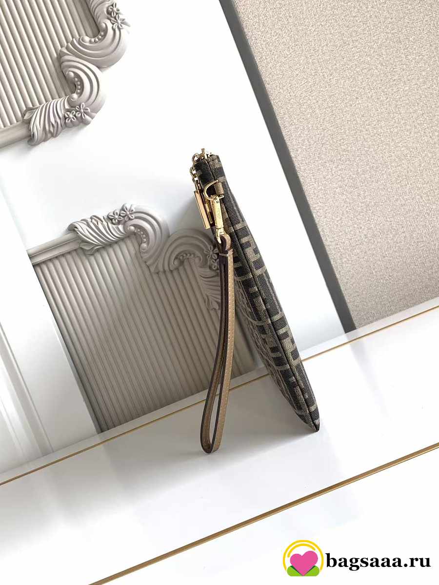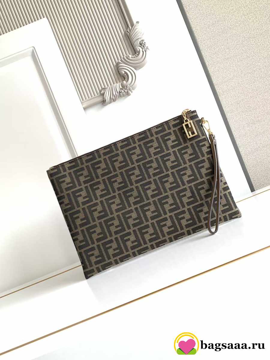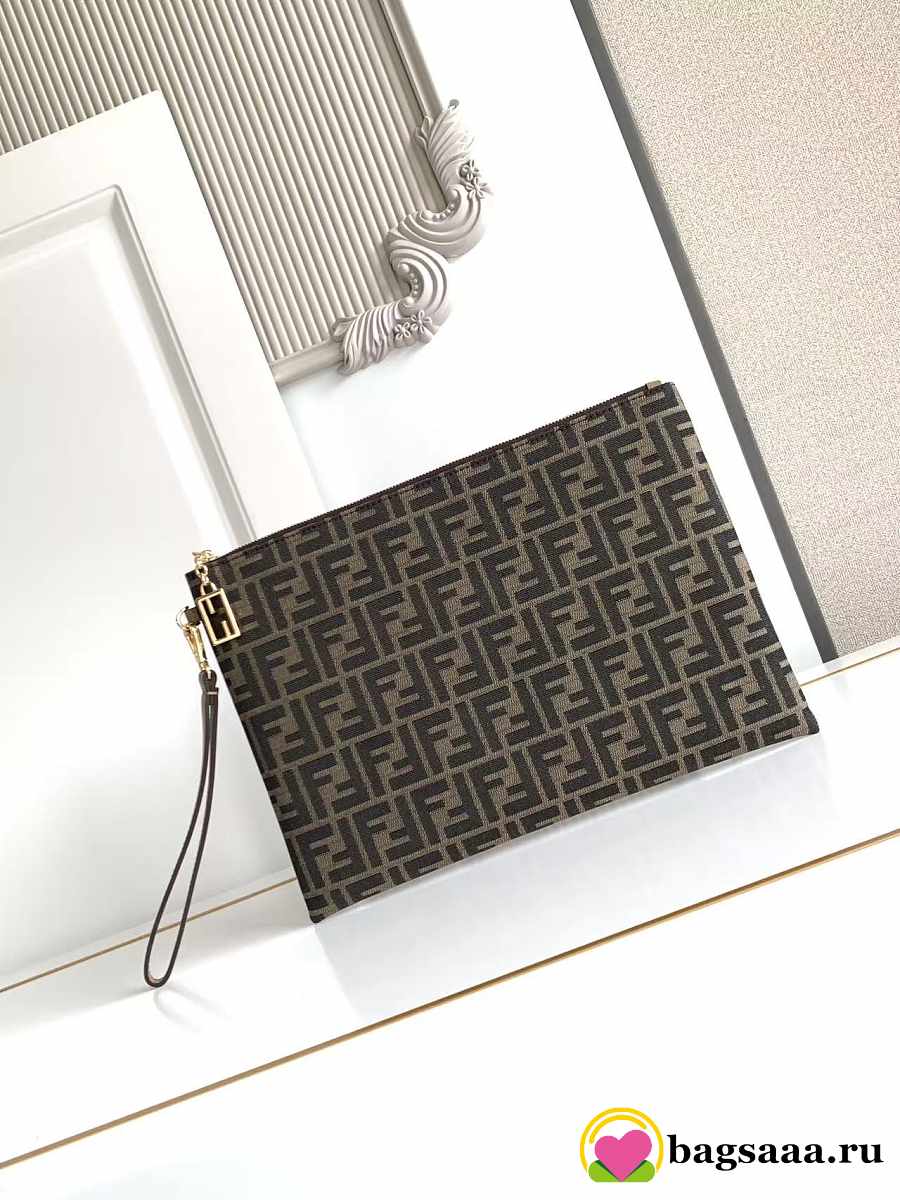 Bagsaaa Fendi Flat Baguette Large Pouch in brown FF jacquard fabric - 34cm