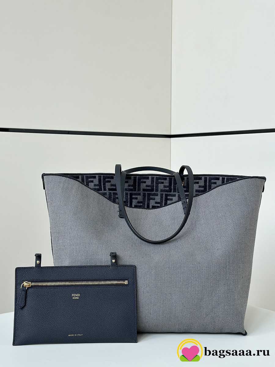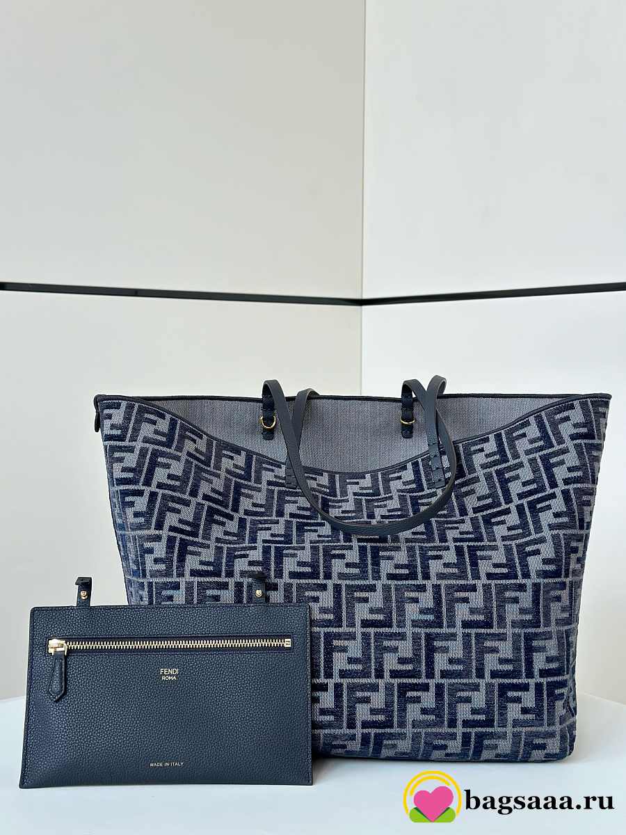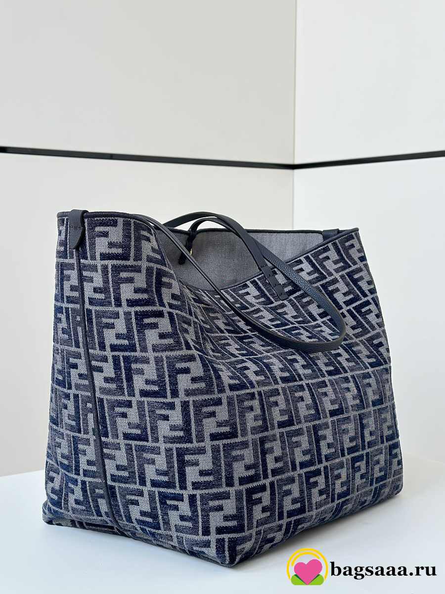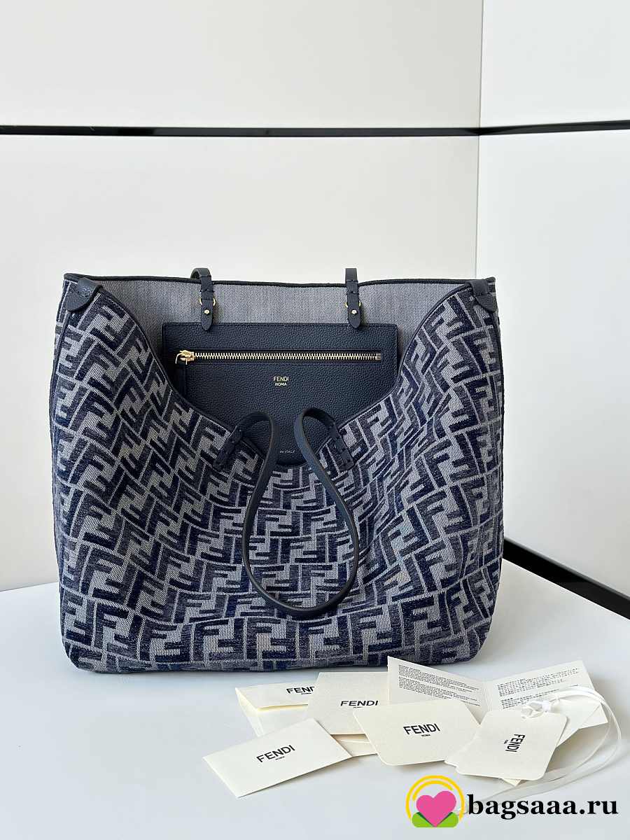 Bagsaaa Fendi Roll Large Dark blue denim-effect FF jacquard reversible shopper - 35cm