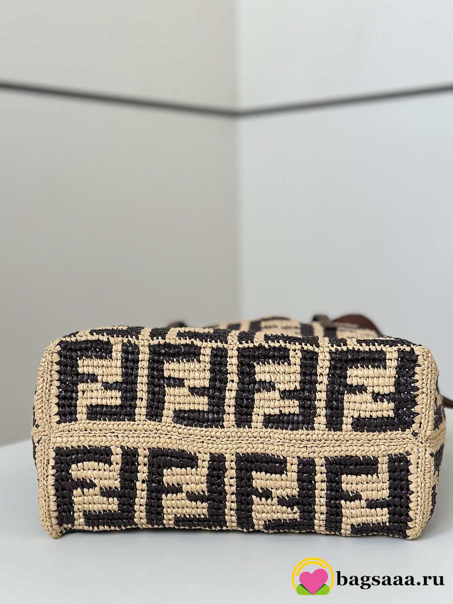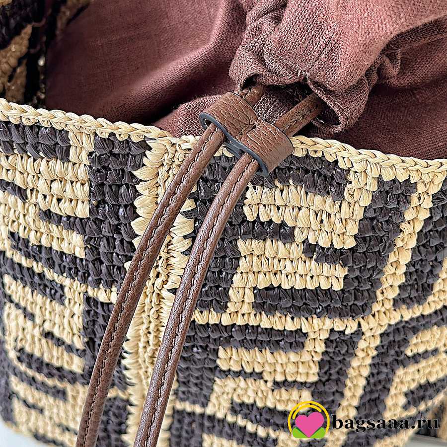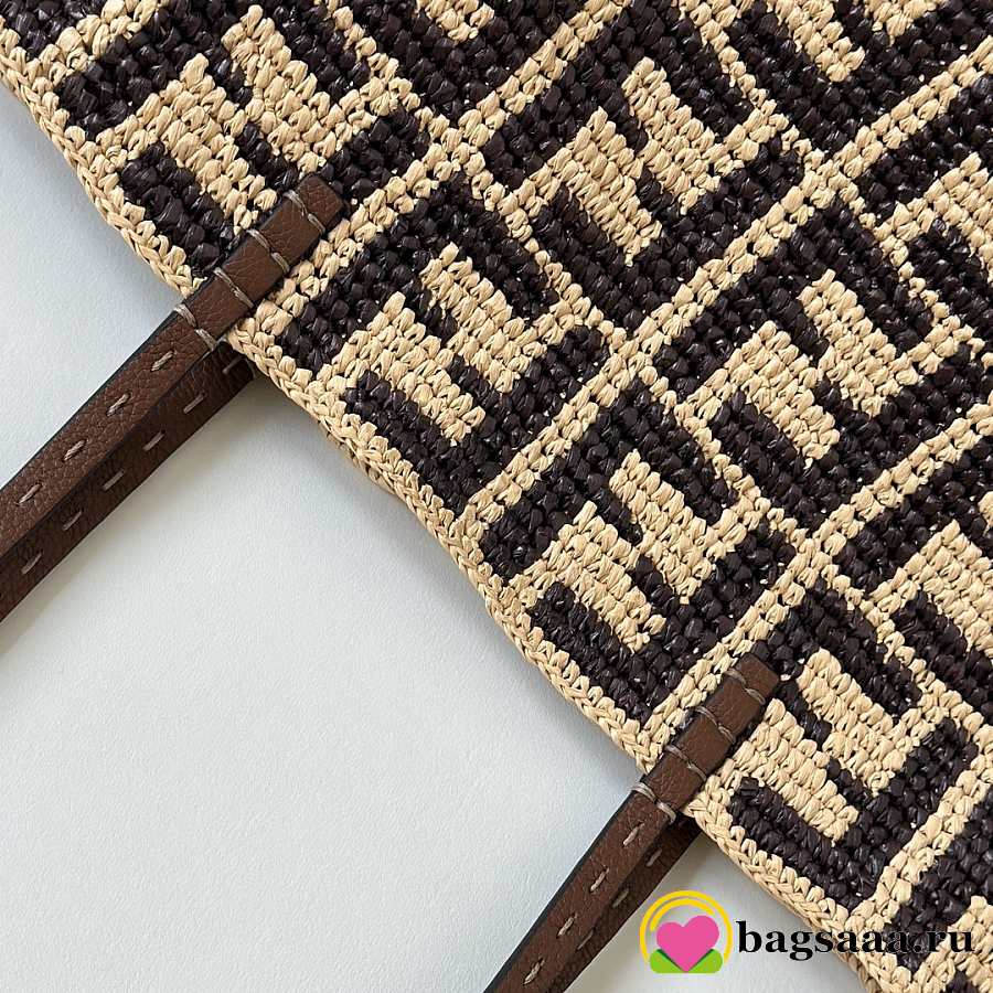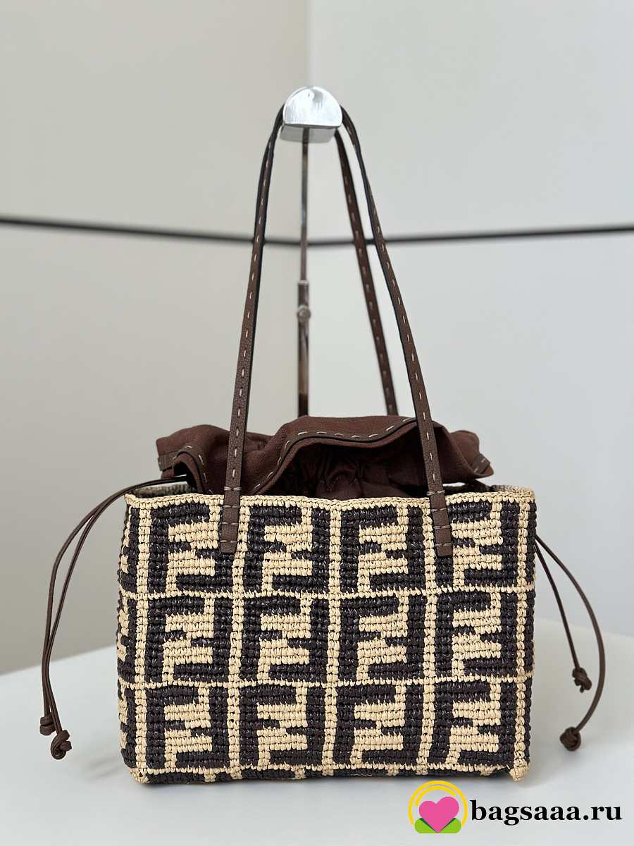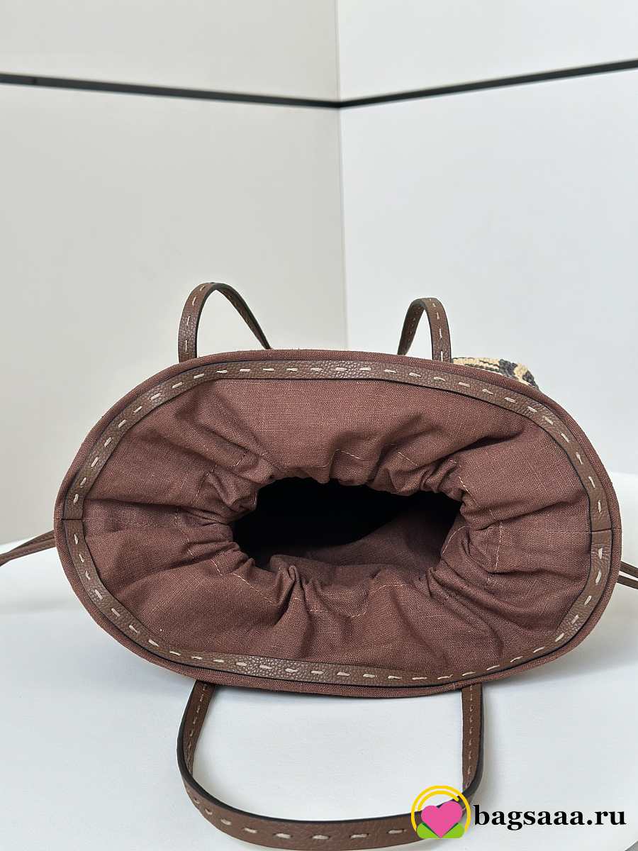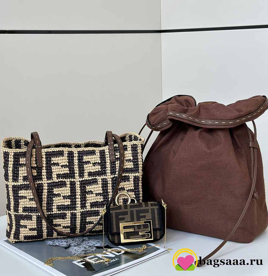 Bagsaaa Fendi Small Roll Brown FF raffia crochet shopper with pouch - 23cm