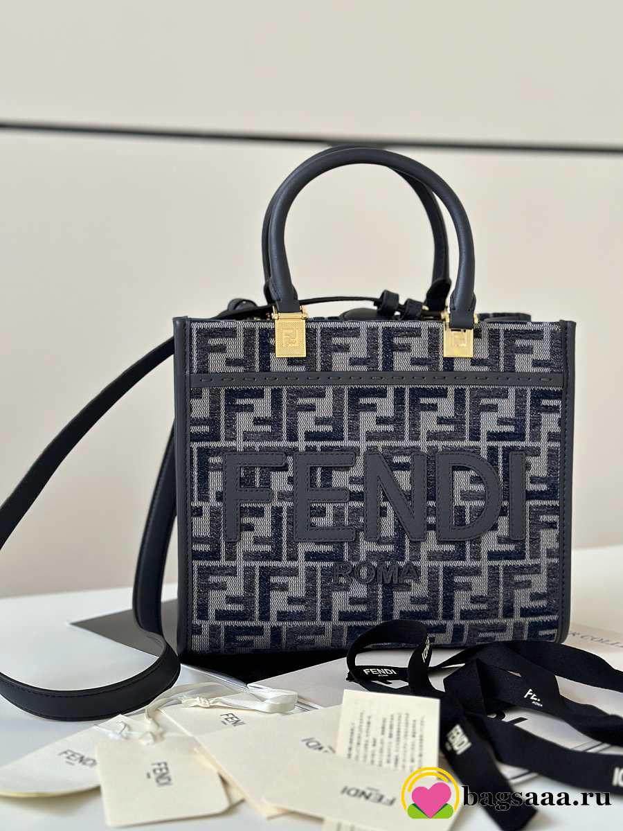 Bagsaaa Fendi Sunshine Small Dark blue FF chenille shopper - 25.5cm