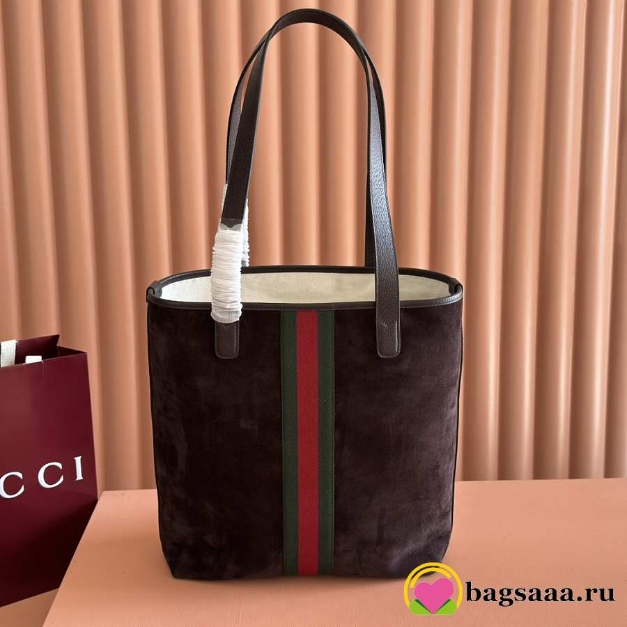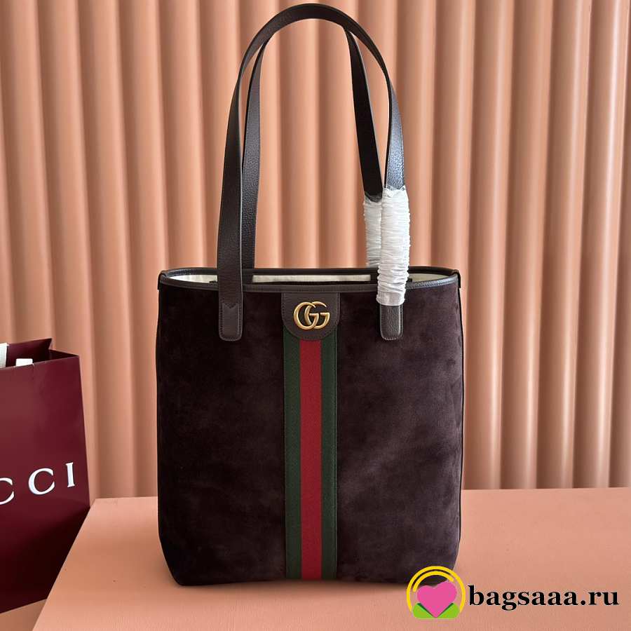 Bagsaaa Gucci Ophidia medium tote bag 834465 dark brown suede - 36cm