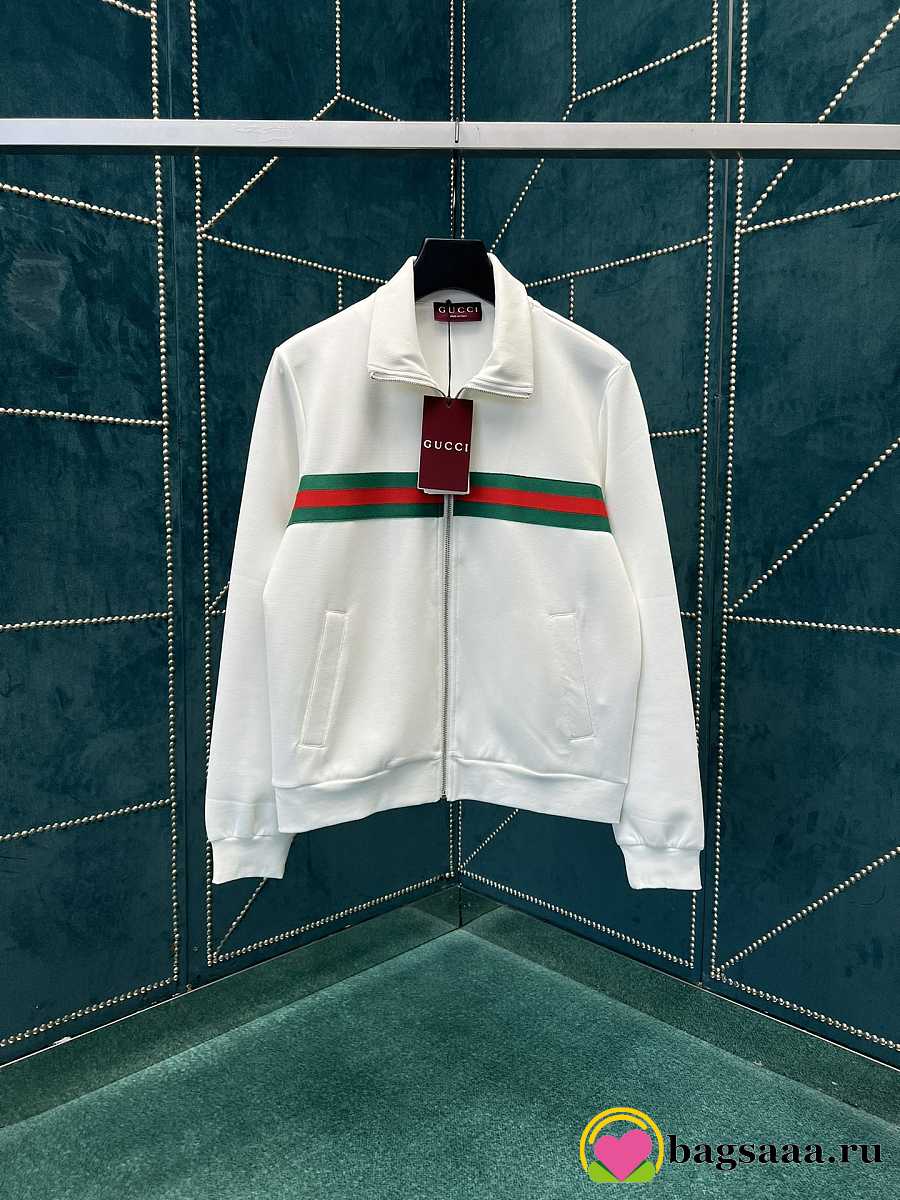 Bagsaaa Gucci Technical jersey zip jacket with Web in white