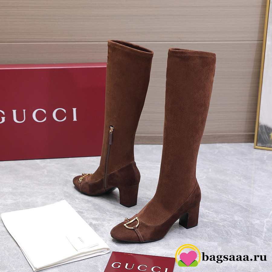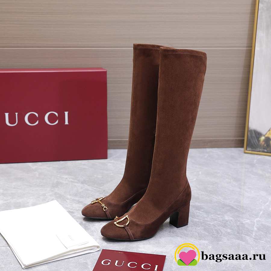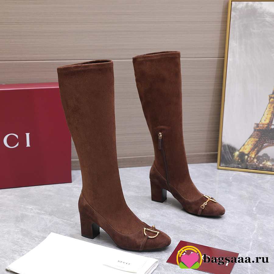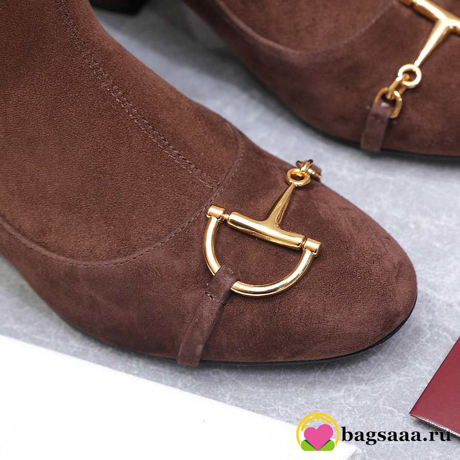 Bagsaaa Gucci Women's boot with half Horsebit 851420 dark brown suede