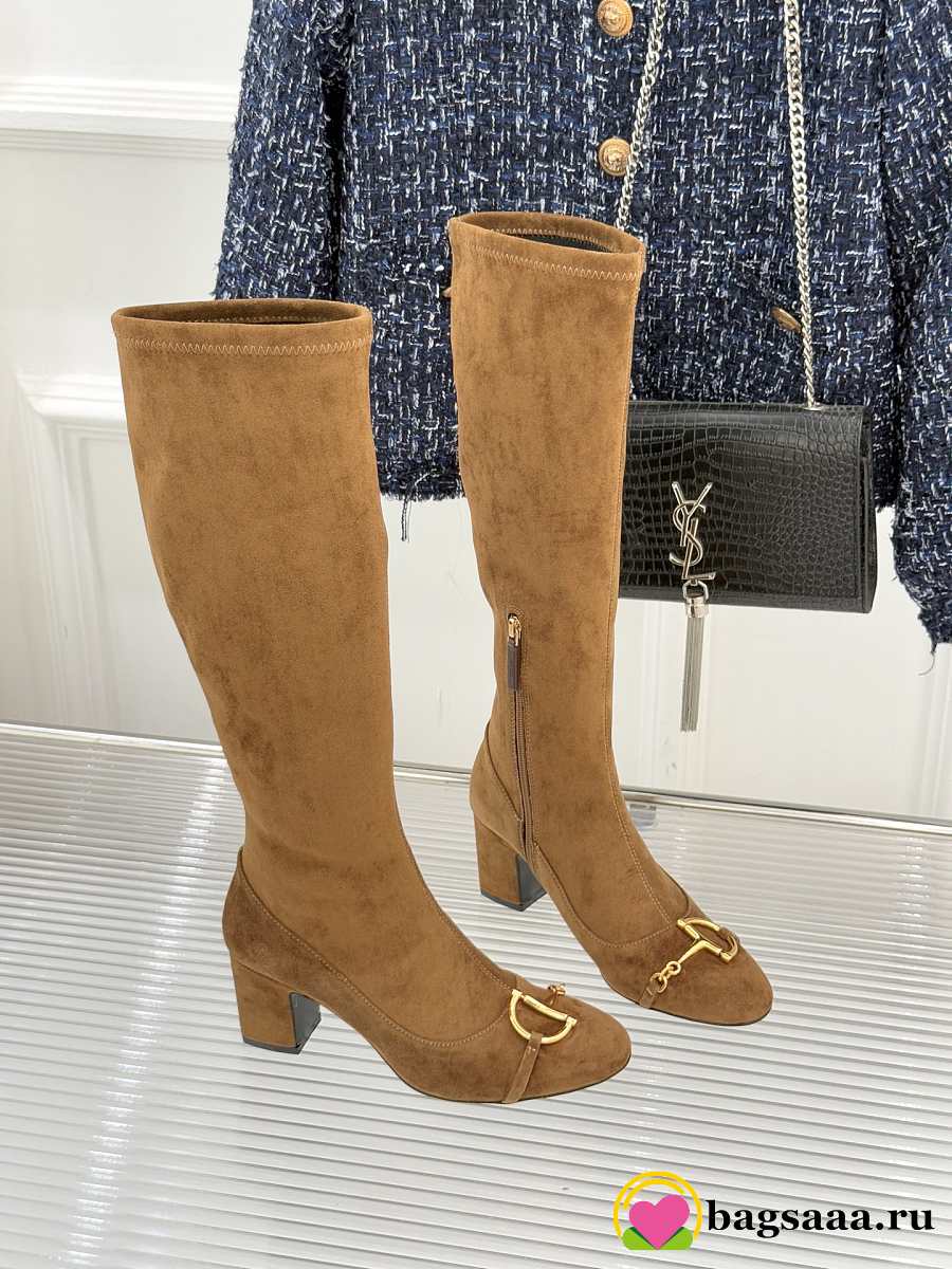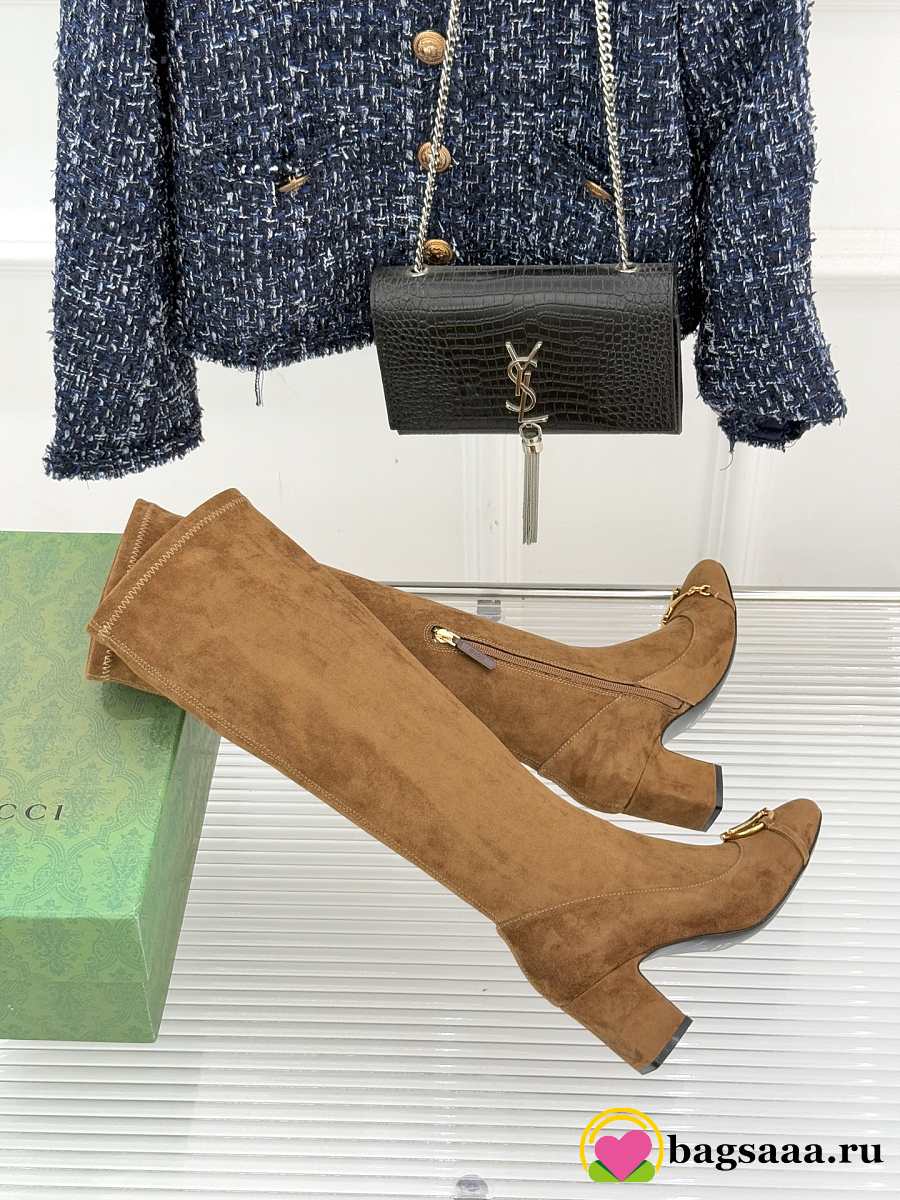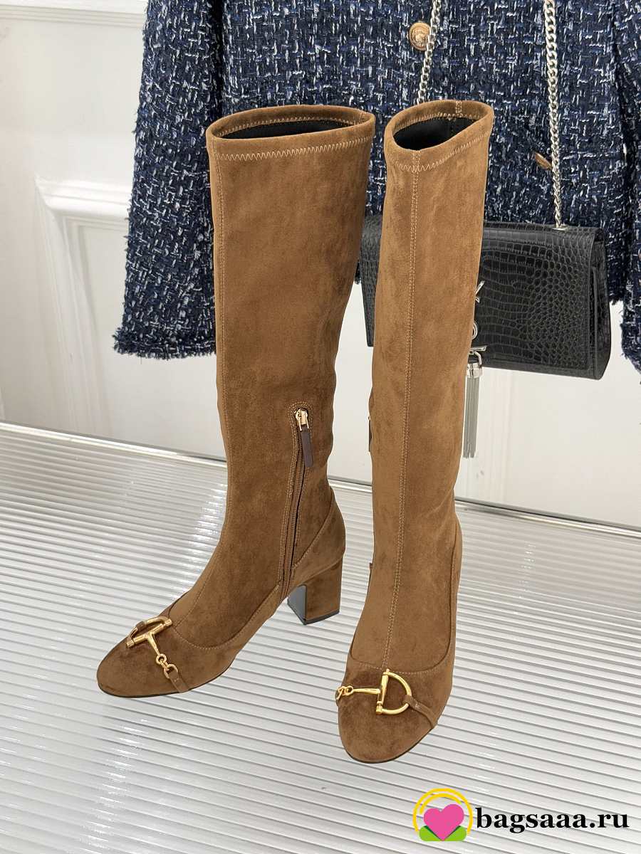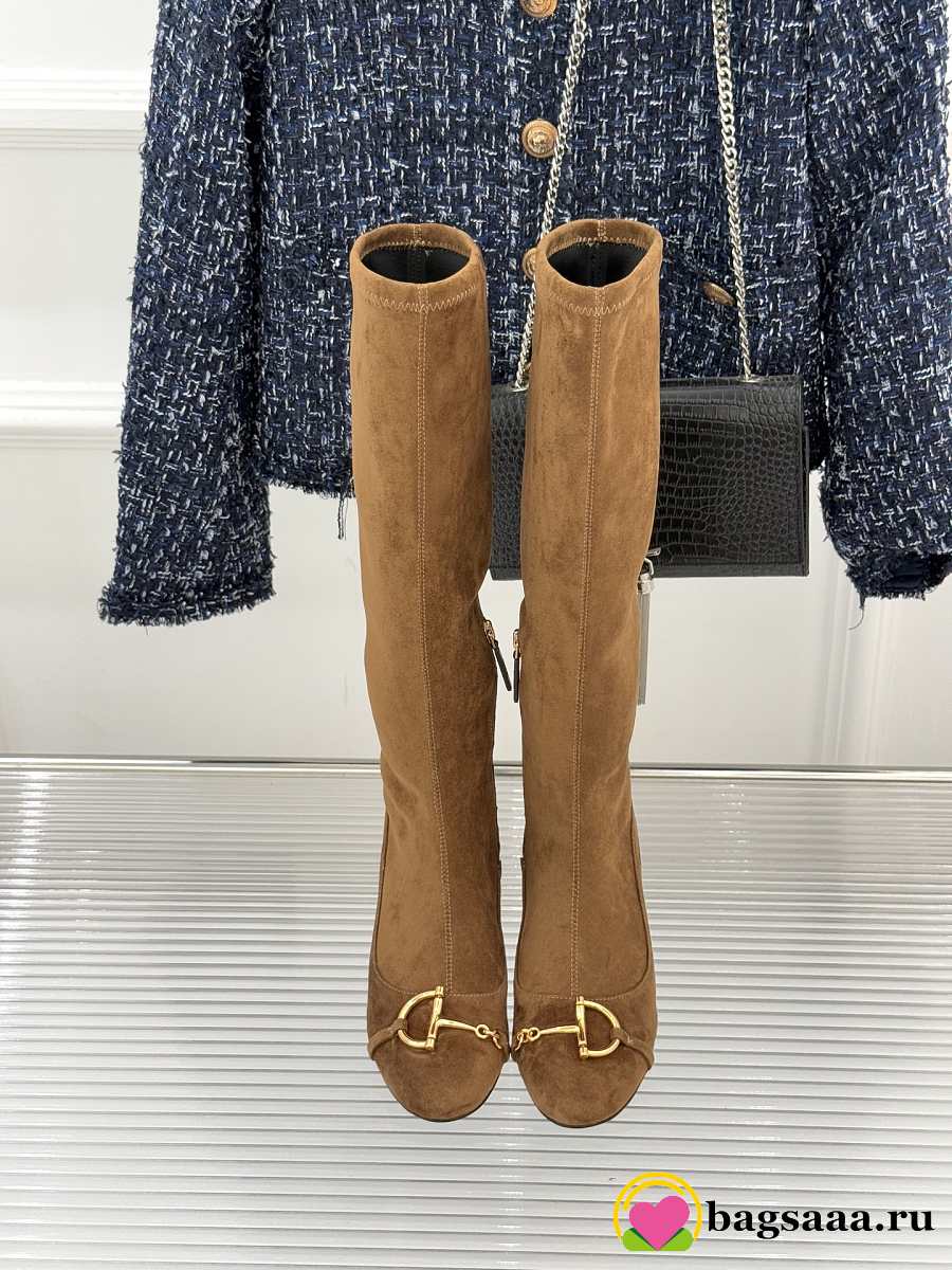 Bagsaaa Gucci Women's boot with half Horsebit 851420 brown suede