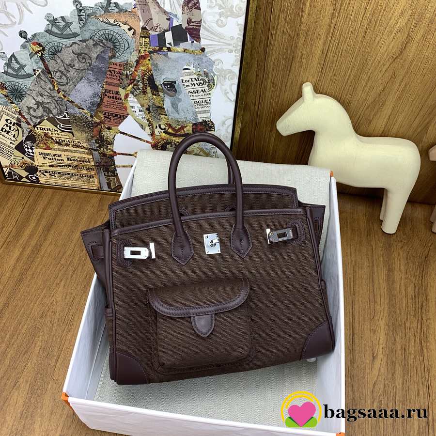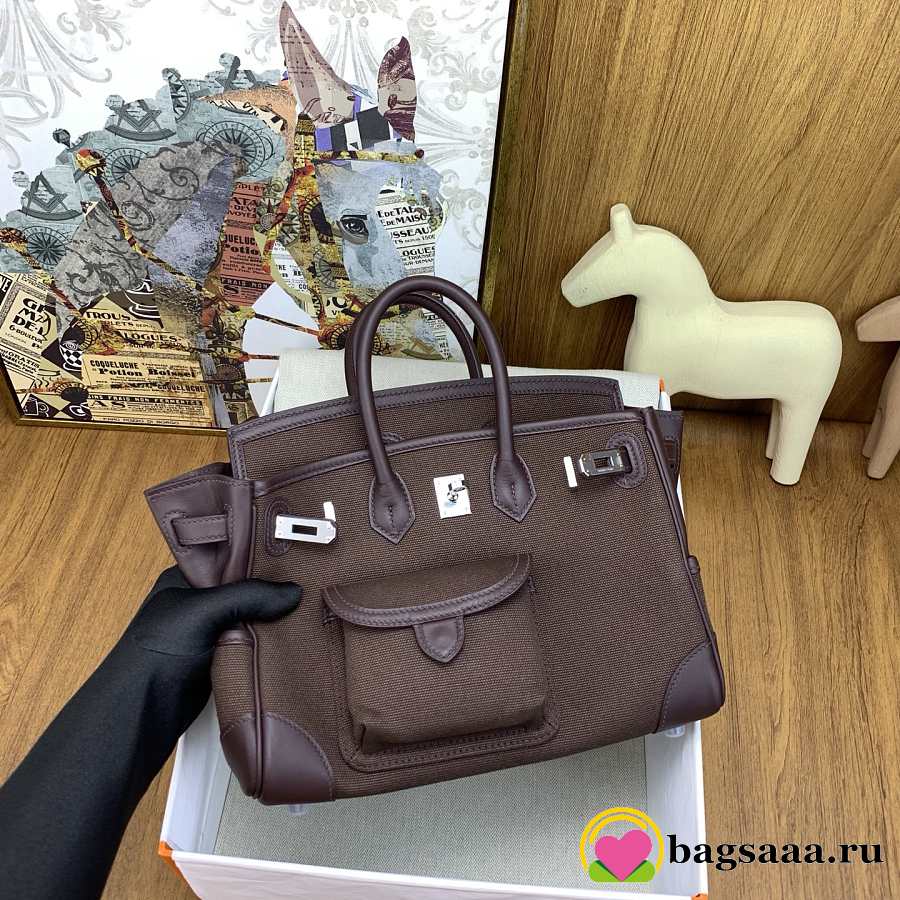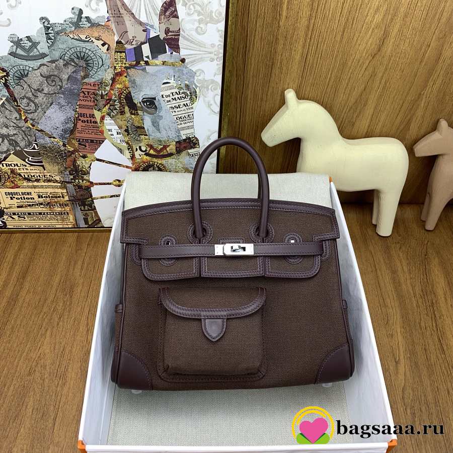 Bagsaaa Hermès Birkin Cargo 25 handbag made of Swift leather and Toile canvas dark brown