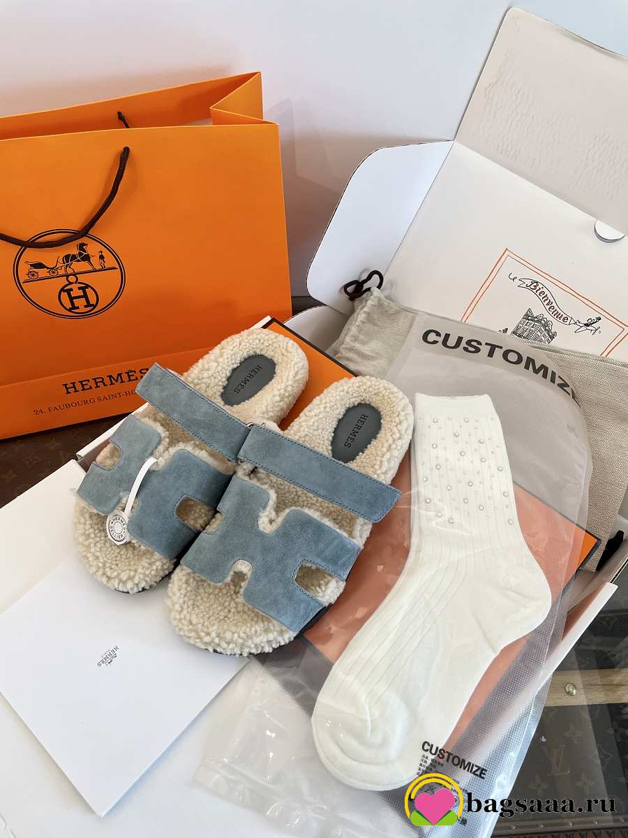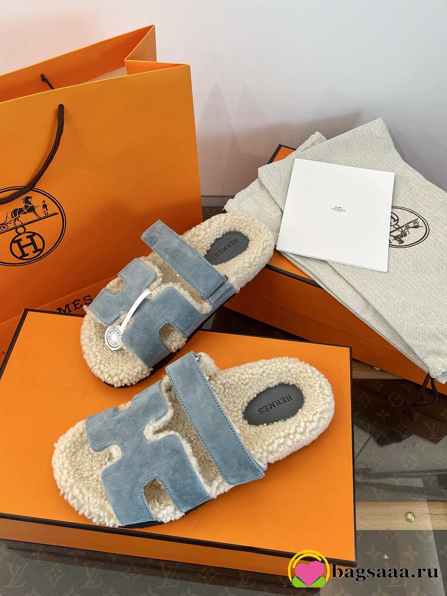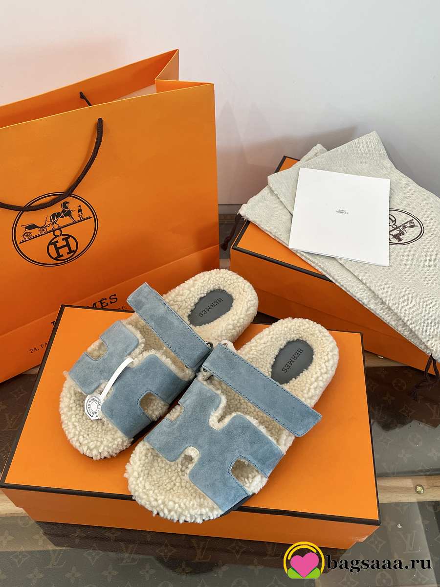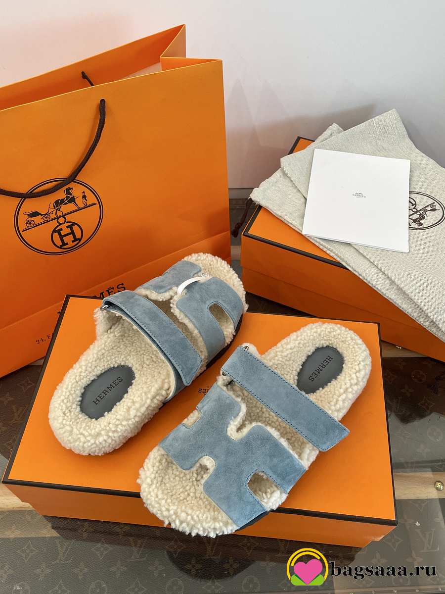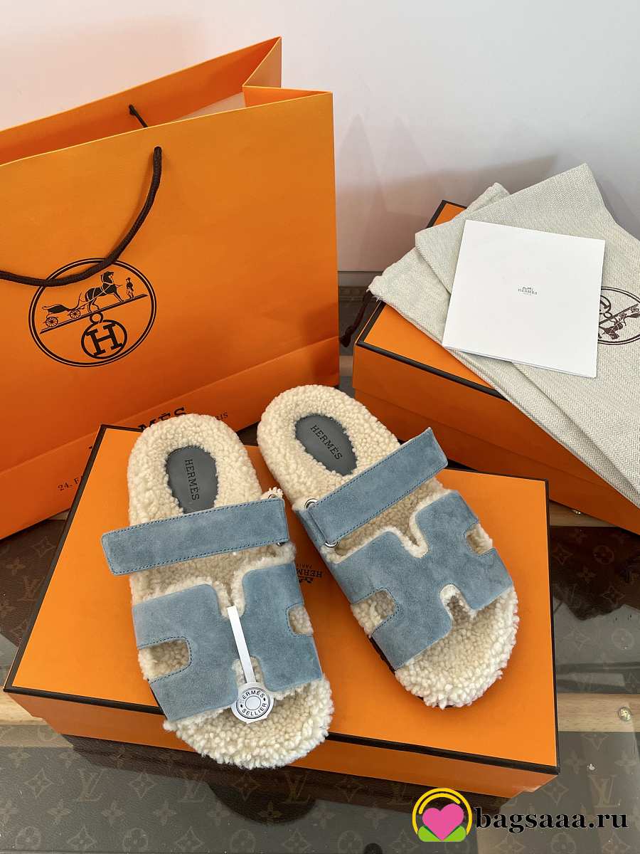Bagsaaa Hermes Chypre sandal blue & shearling