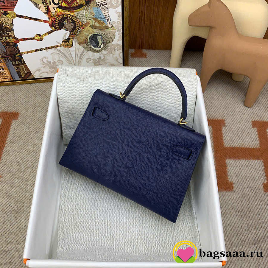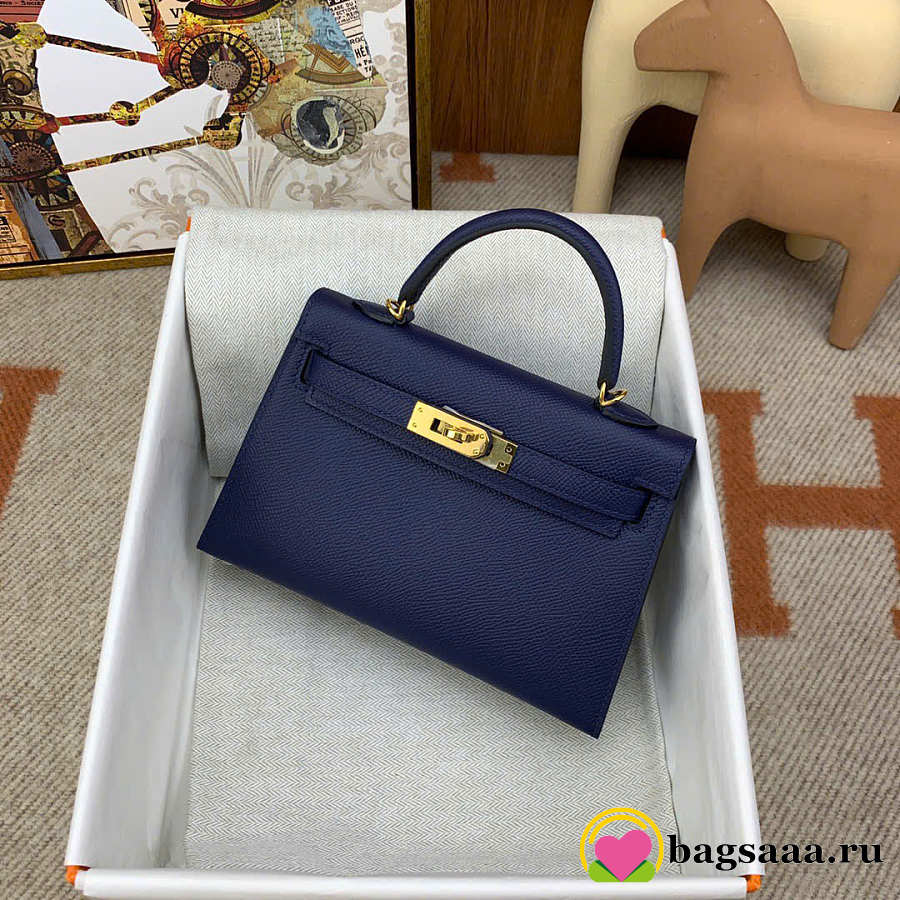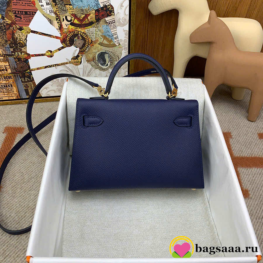 Bagsaaa Hermes Mini Kelly sapphire blue epsom - 19cm