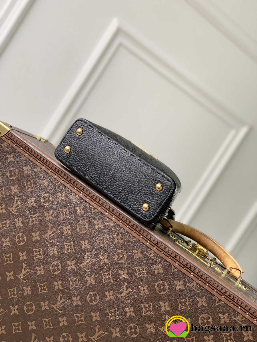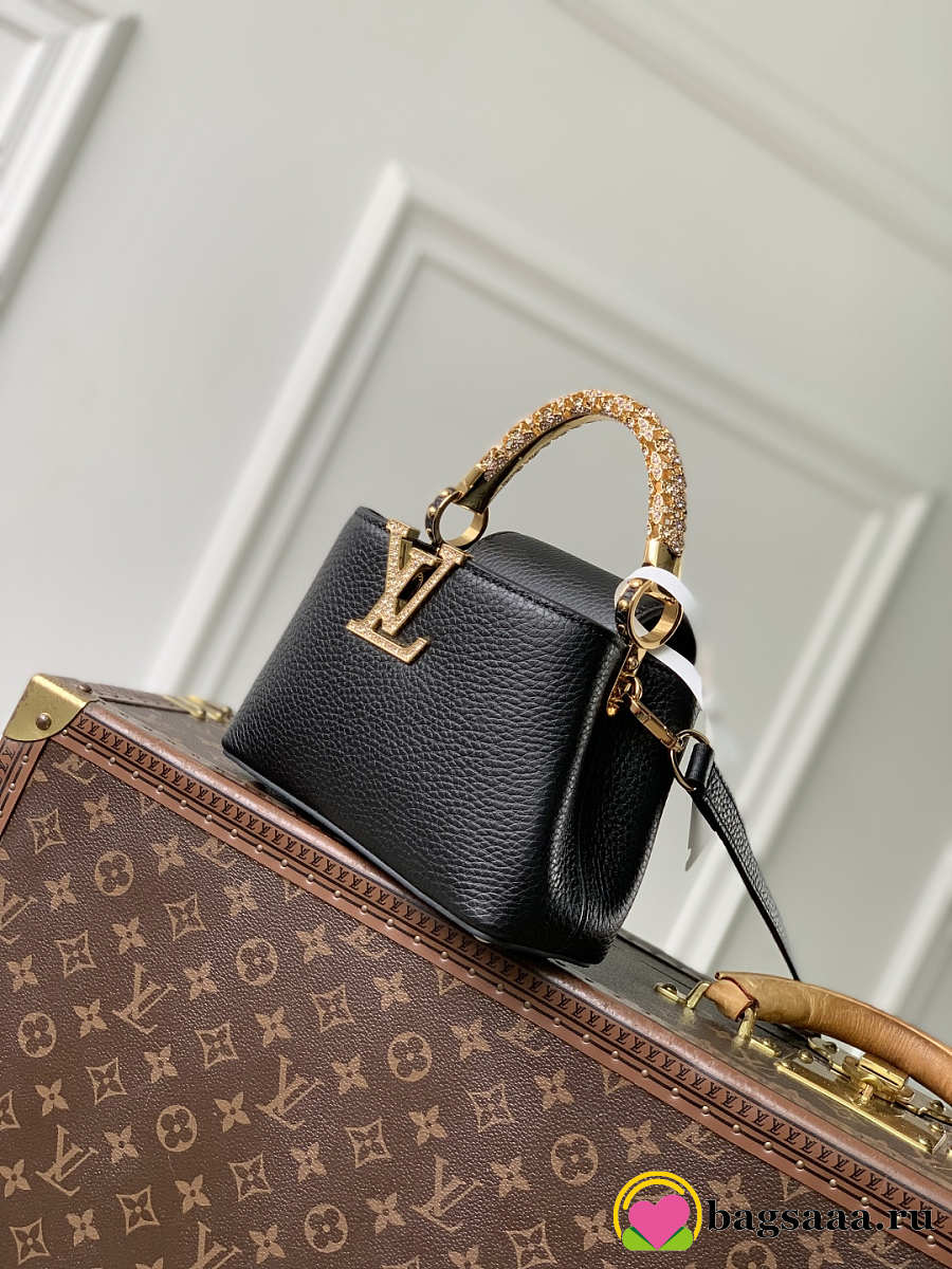 Bagsaaa Louis Vuitton Capucines Mini black Taurillon leather with rhinestone-embellished handle - 21cm