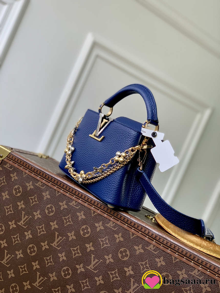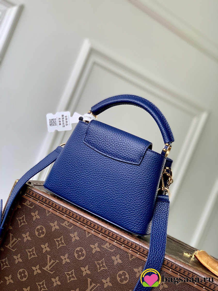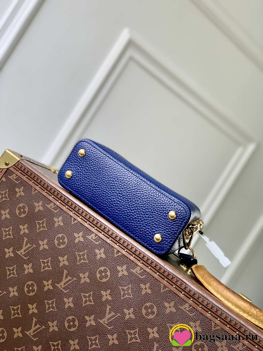 Bagsaaa Louis Vuitton Capucines Mini handbag in blue Taurillon leather with gold - 21cm