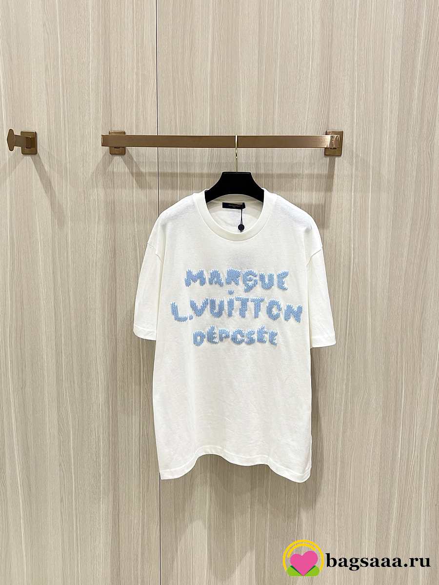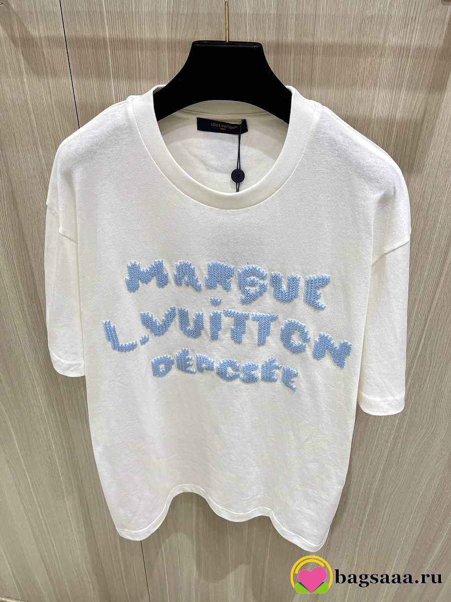 Bagsaaa Louis Vuitton Embroidered Signature T-Shirt in white