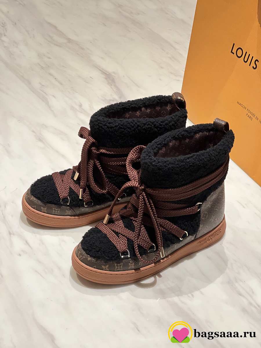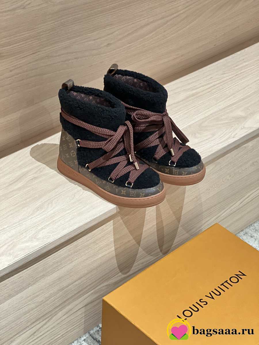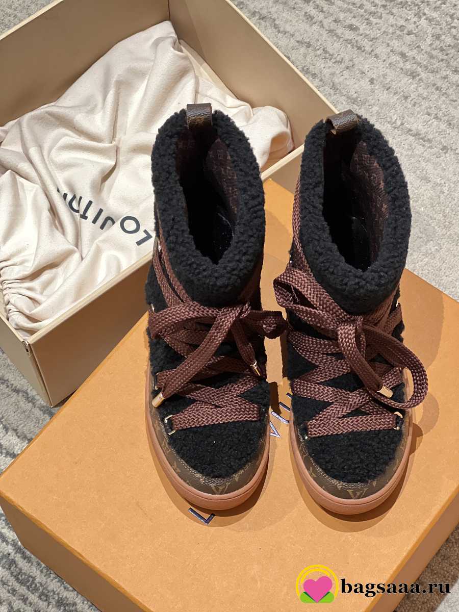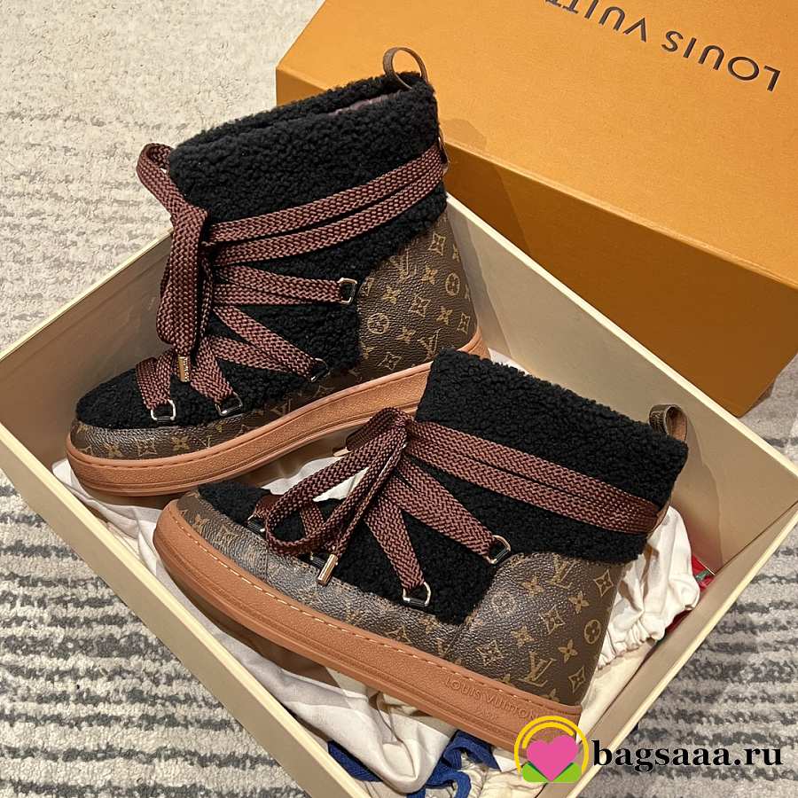 Bagsaaa Louis Vuitton LV Cloud Lace-Up Ankle Boot Sneaker black shearling
