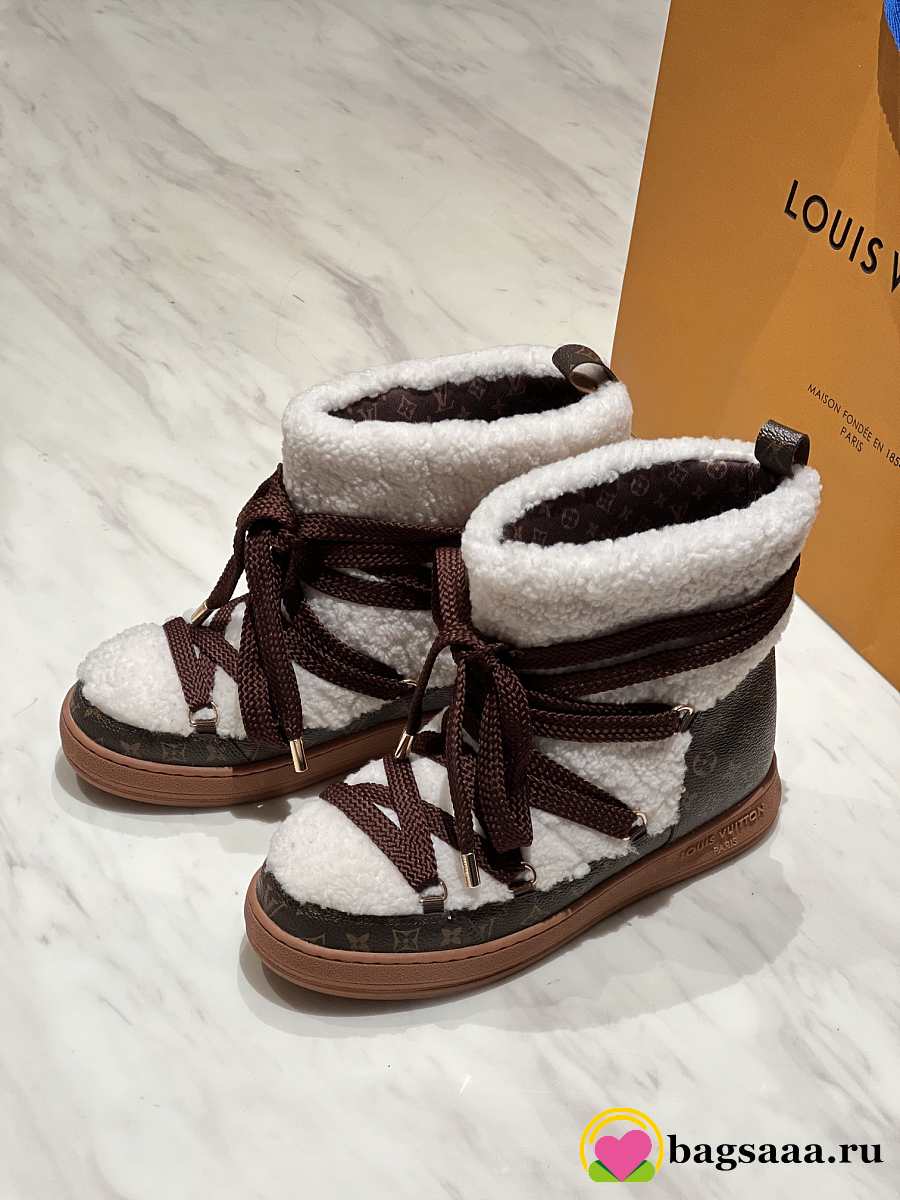 Bagsaaa Louis Vuitton LV Cloud Lace-Up Ankle Boot Sneaker cream shearling