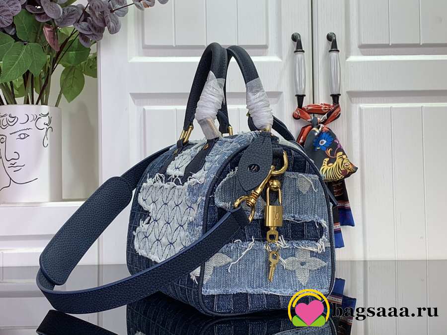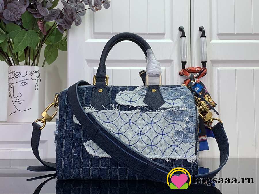 Bagsaaa Louis Vuitton x Nigo Speedy 25 Bandoulière Bag in blue denim - 25cm