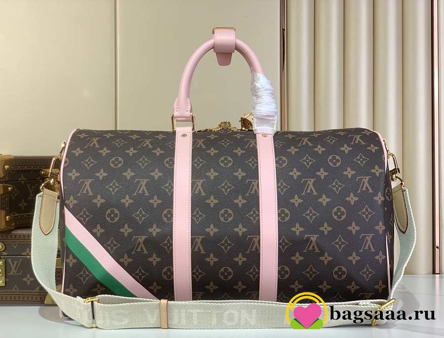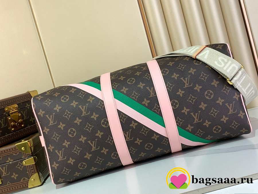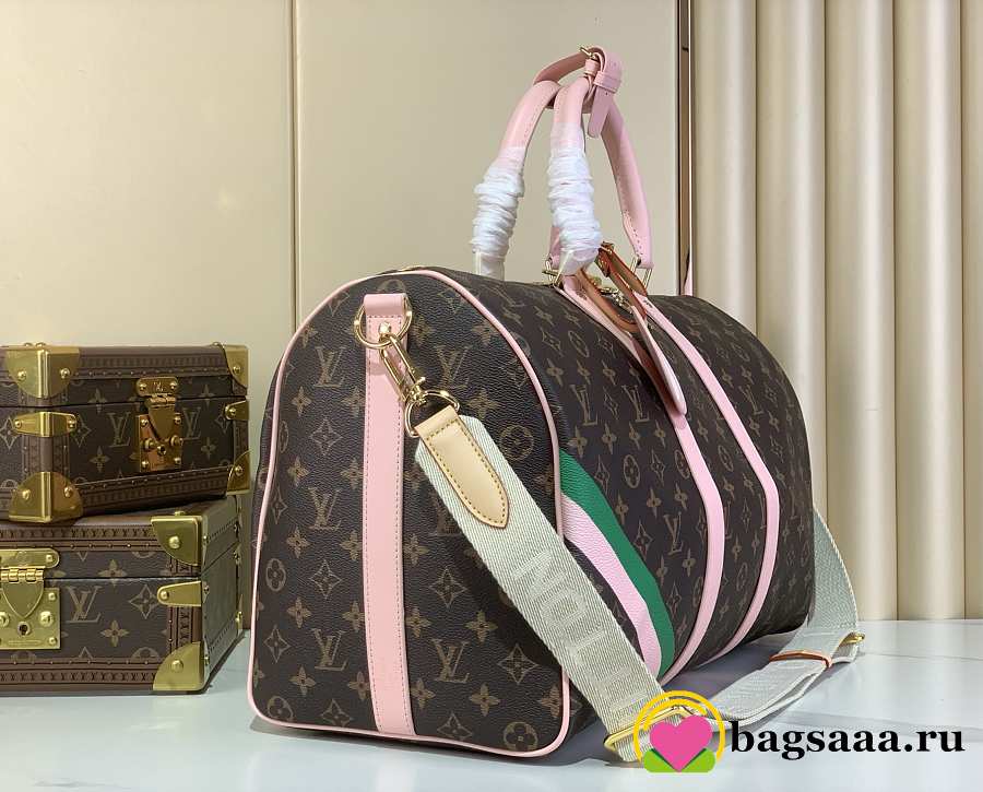 Bagsaaa LV Keepall Bandoulière 45 bag Monogram canvas with pink-and-green stripes - 45cm