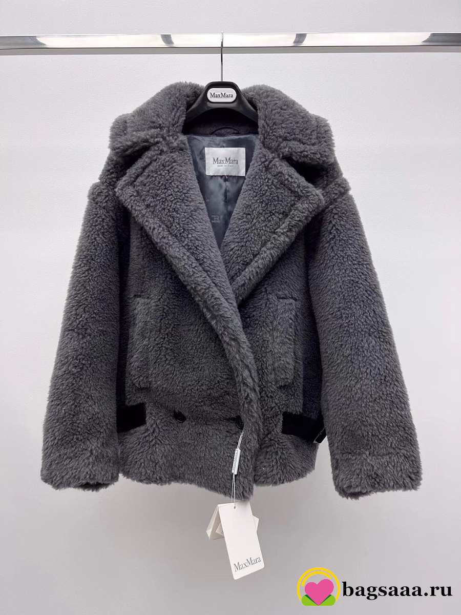 Bagsaaa Max Mara Teddy Bear Icon coat in gray alpaca and wool-blend fabric