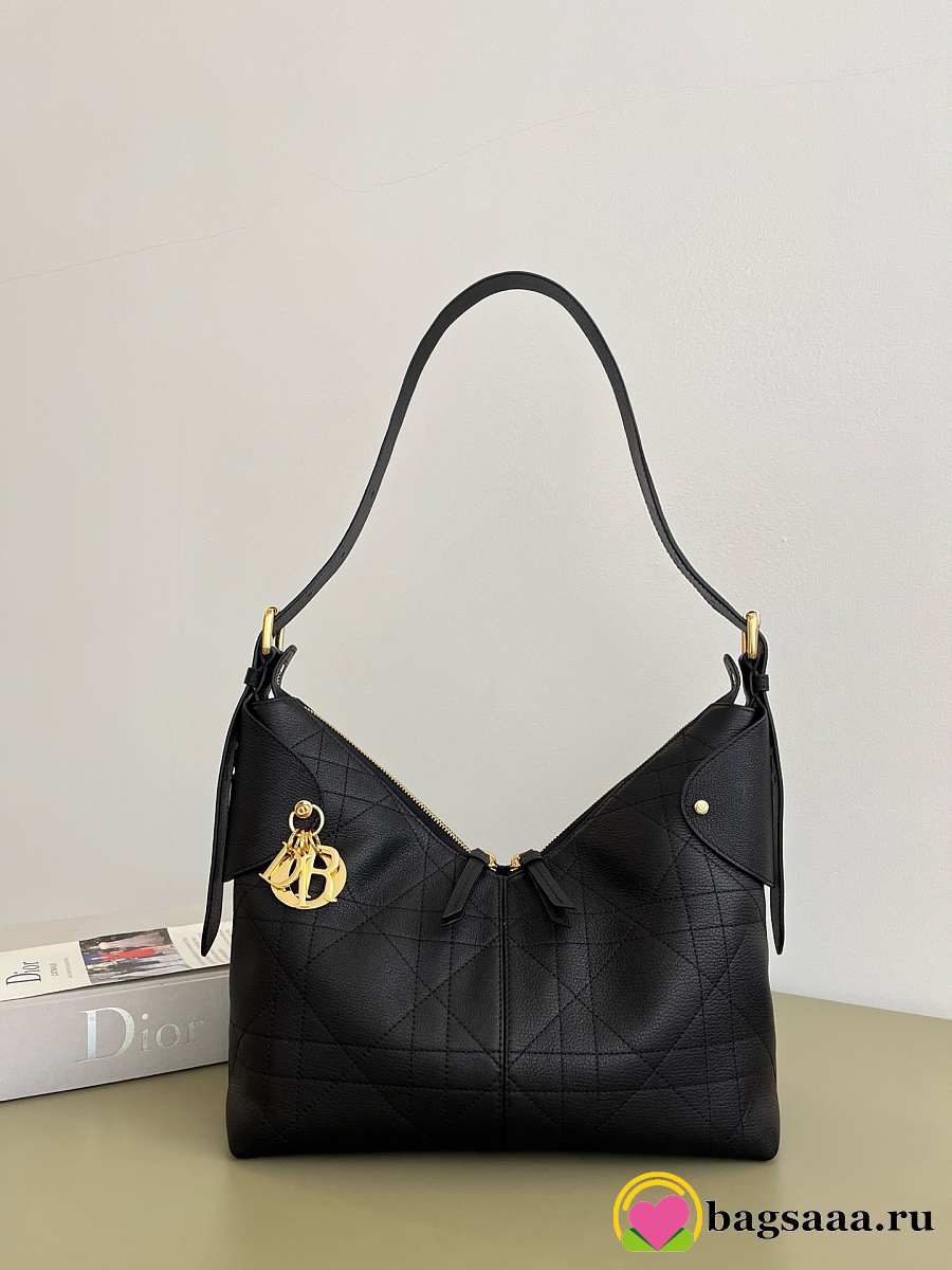 Bagsaaa Medium Dior Voyage Bag Black Flat Macrocannage Crinkled Calfskin - 28cm