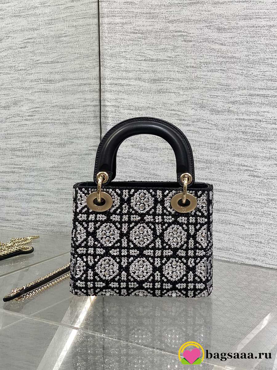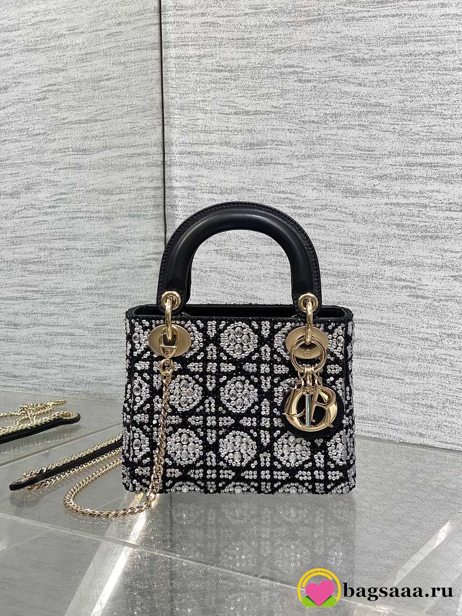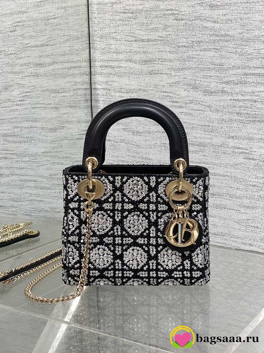 Bagsaaa Mini Lady Dior Bag Cannage Embroidery with Black Beads and Silver-Tone Strass - 17cm