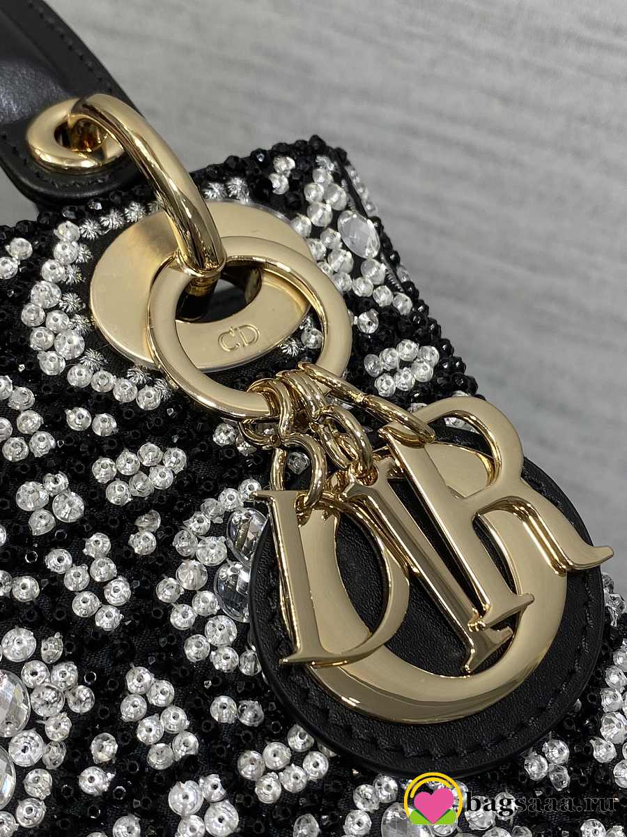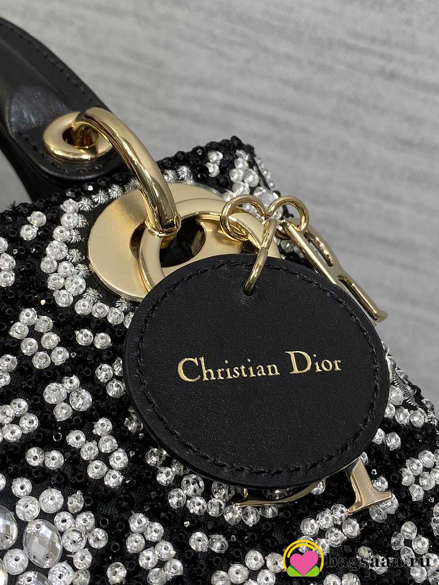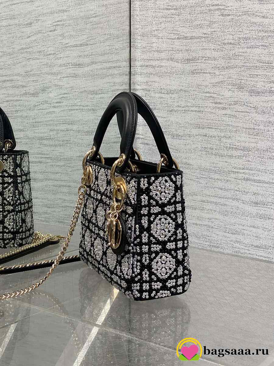 Bagsaaa Mini Lady Dior Bag Cannage Embroidery with Black Beads and Silver-Tone Strass - 17cm